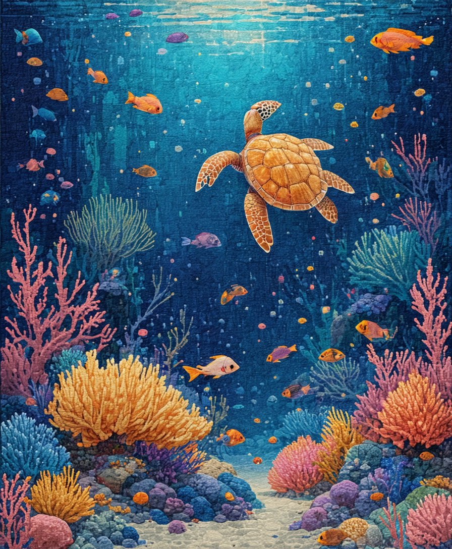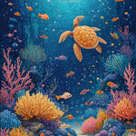 Exotic Ocean Ecosystem With Majestic Turtles Exploring Vivid Coral Garden(Blue)