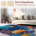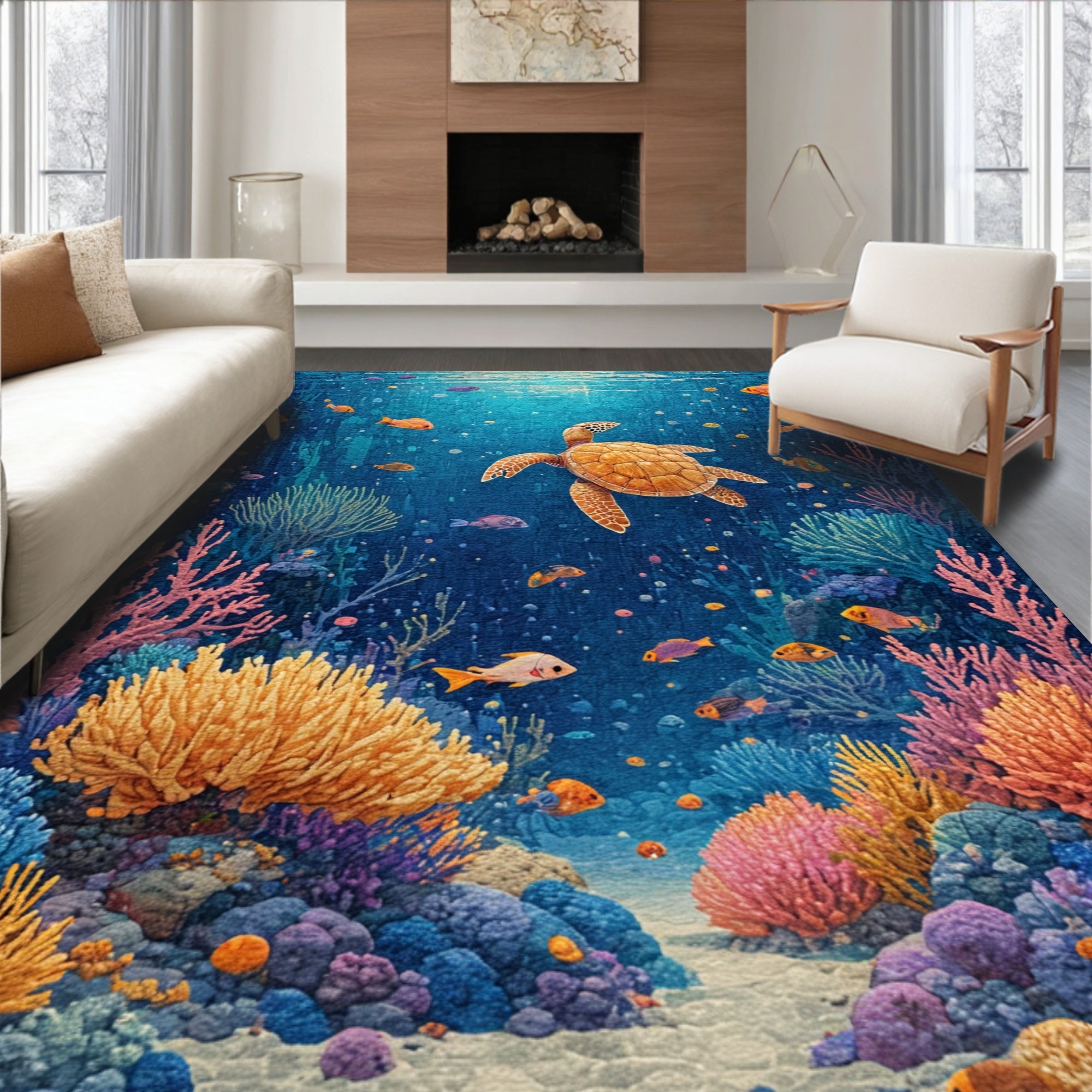 Ultra Soft Area Rug, Non Slip, Stain Resistant, Washable Area Rugs for Living Room, Bedroom, Exotic Ocean Ecosystem Rug With Majestic Turtles Exploring Vivid Coral Garden(Blue) Overview: