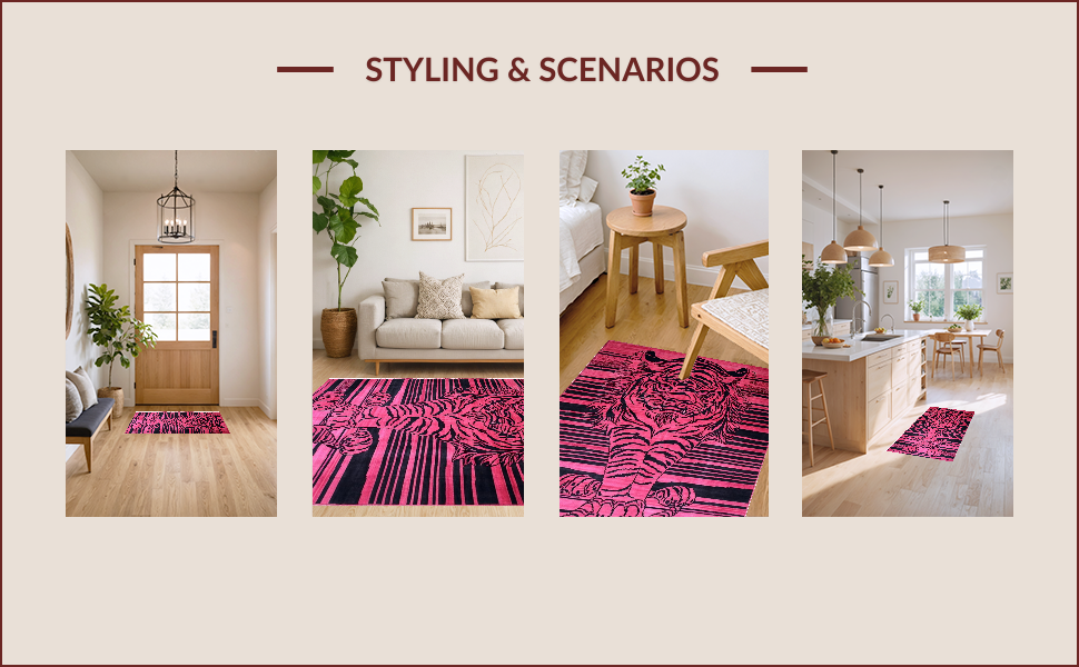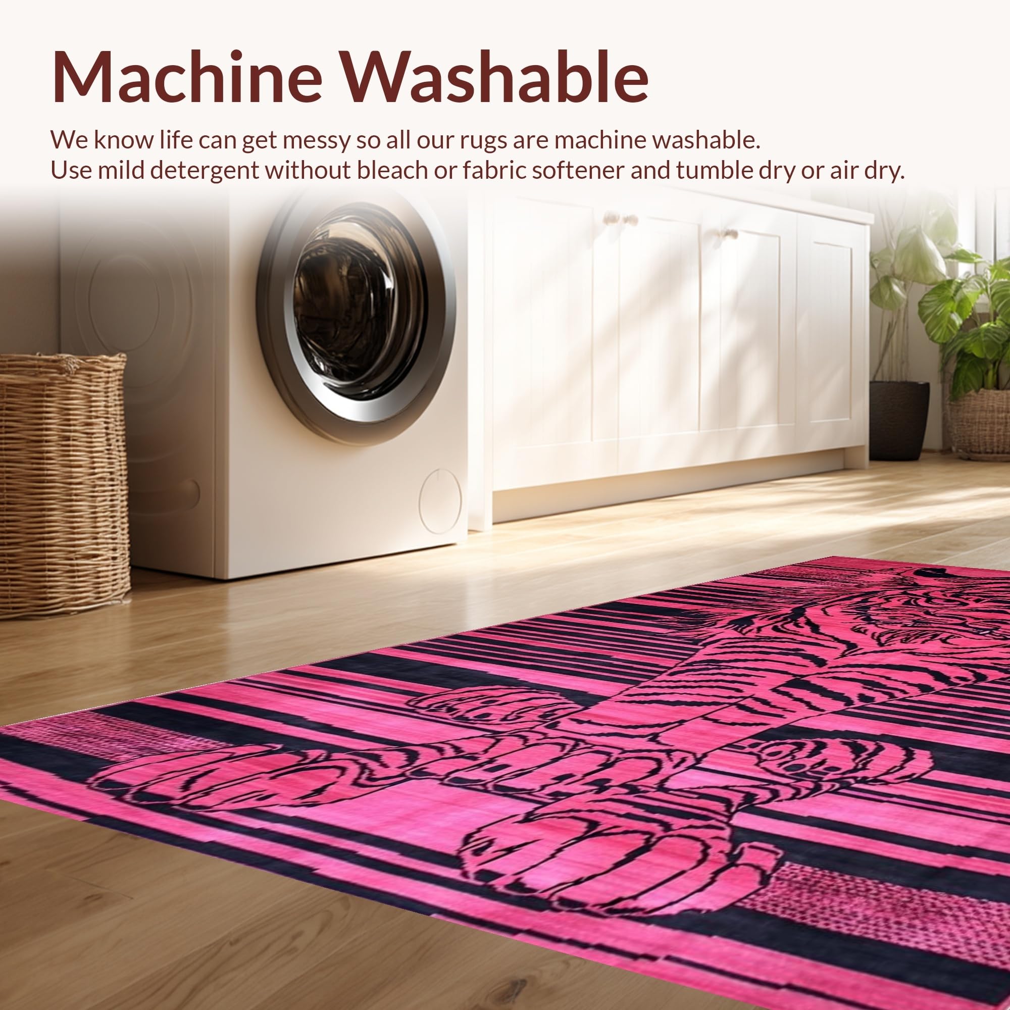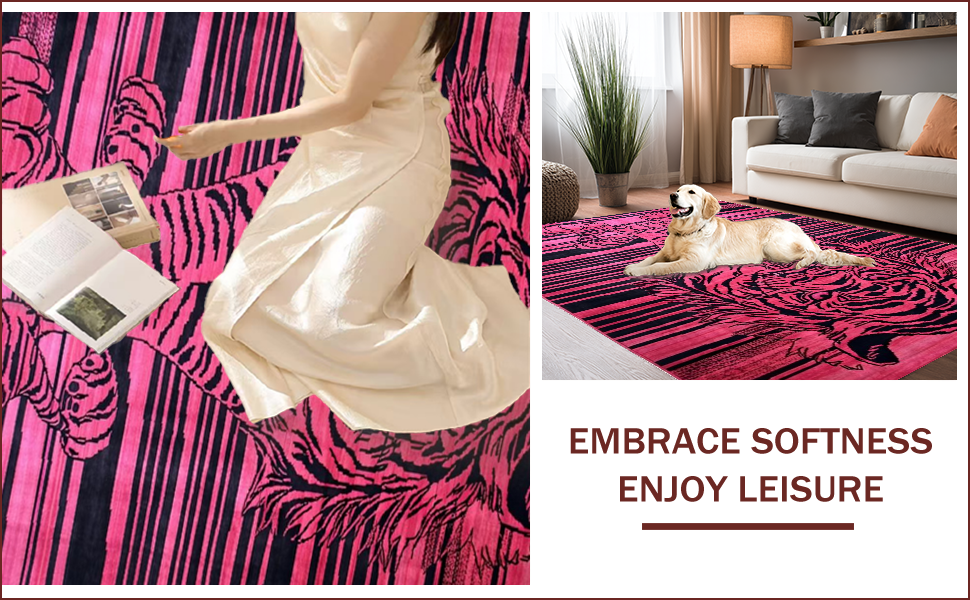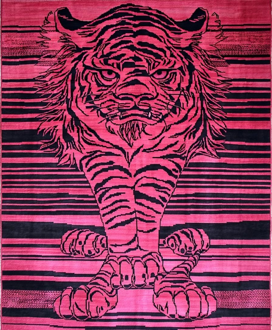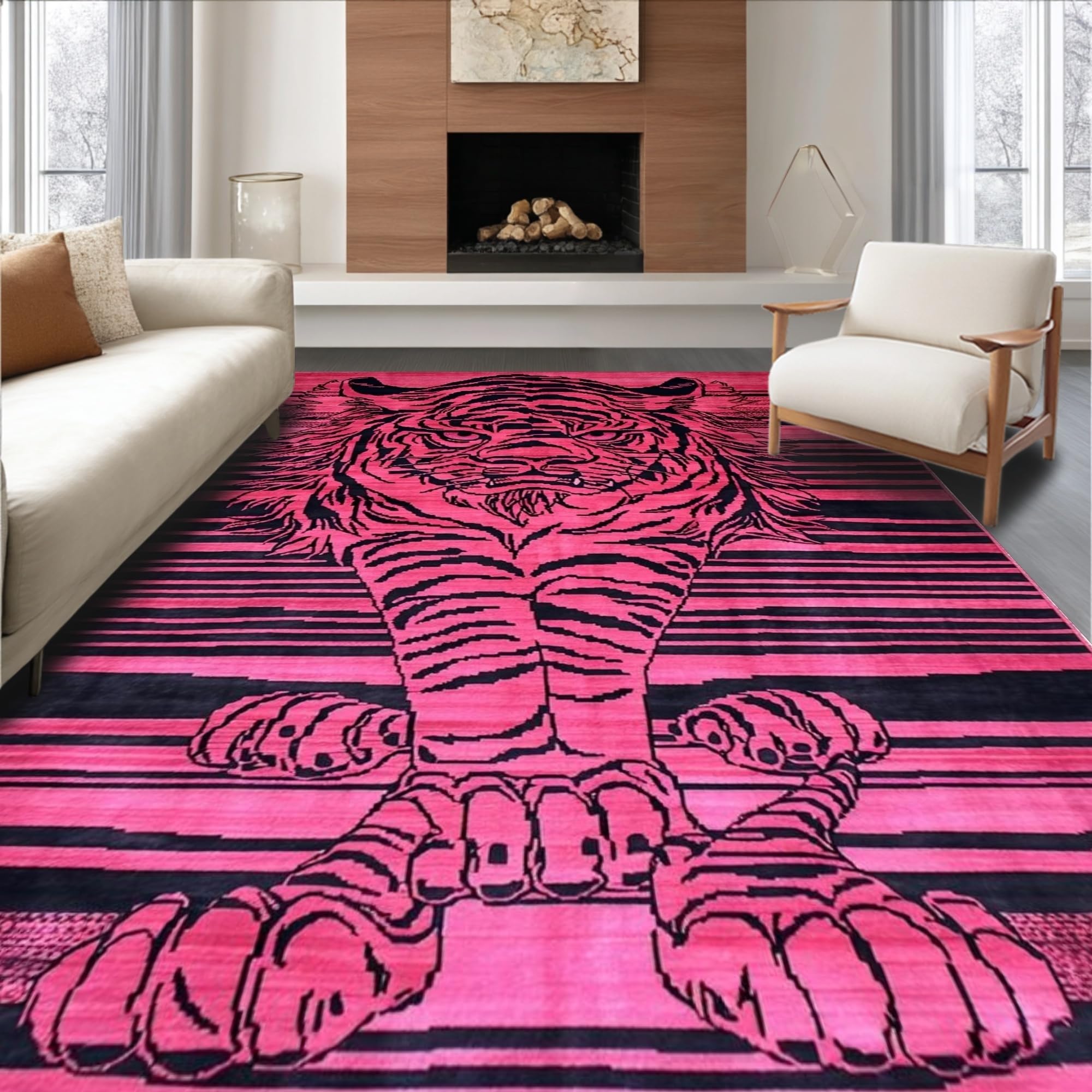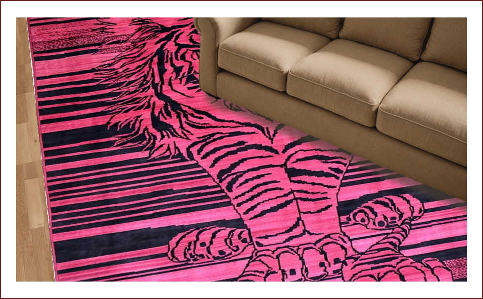 Ultra Soft Area Rug, Non Slip, Stain Resistant, Washable Area Rugs for Living Room, Bedroom, Exotic Tibetan Tiger Textile Artistry(Pink) Overview: