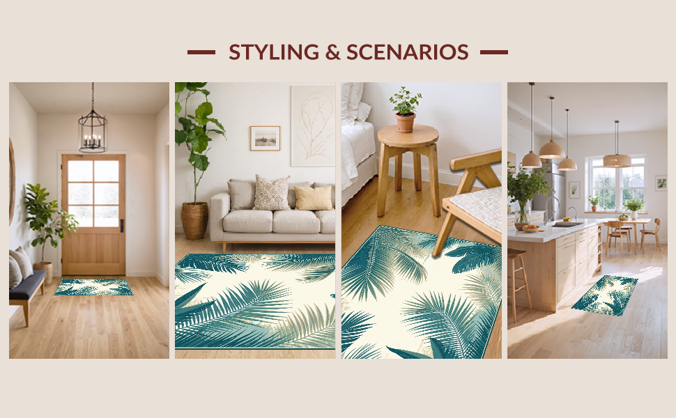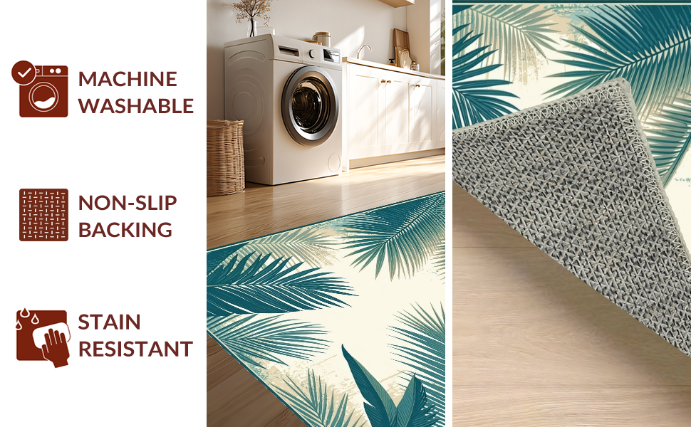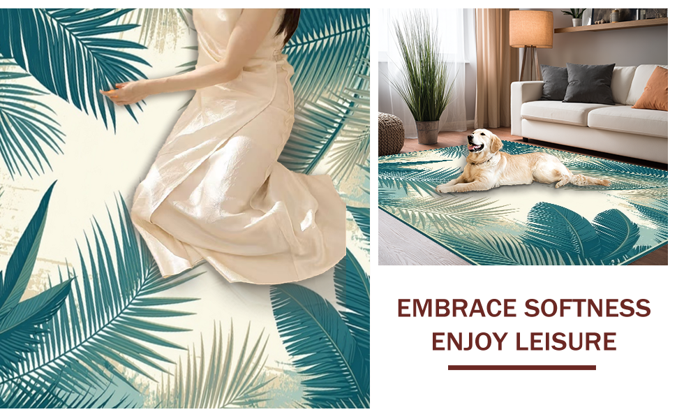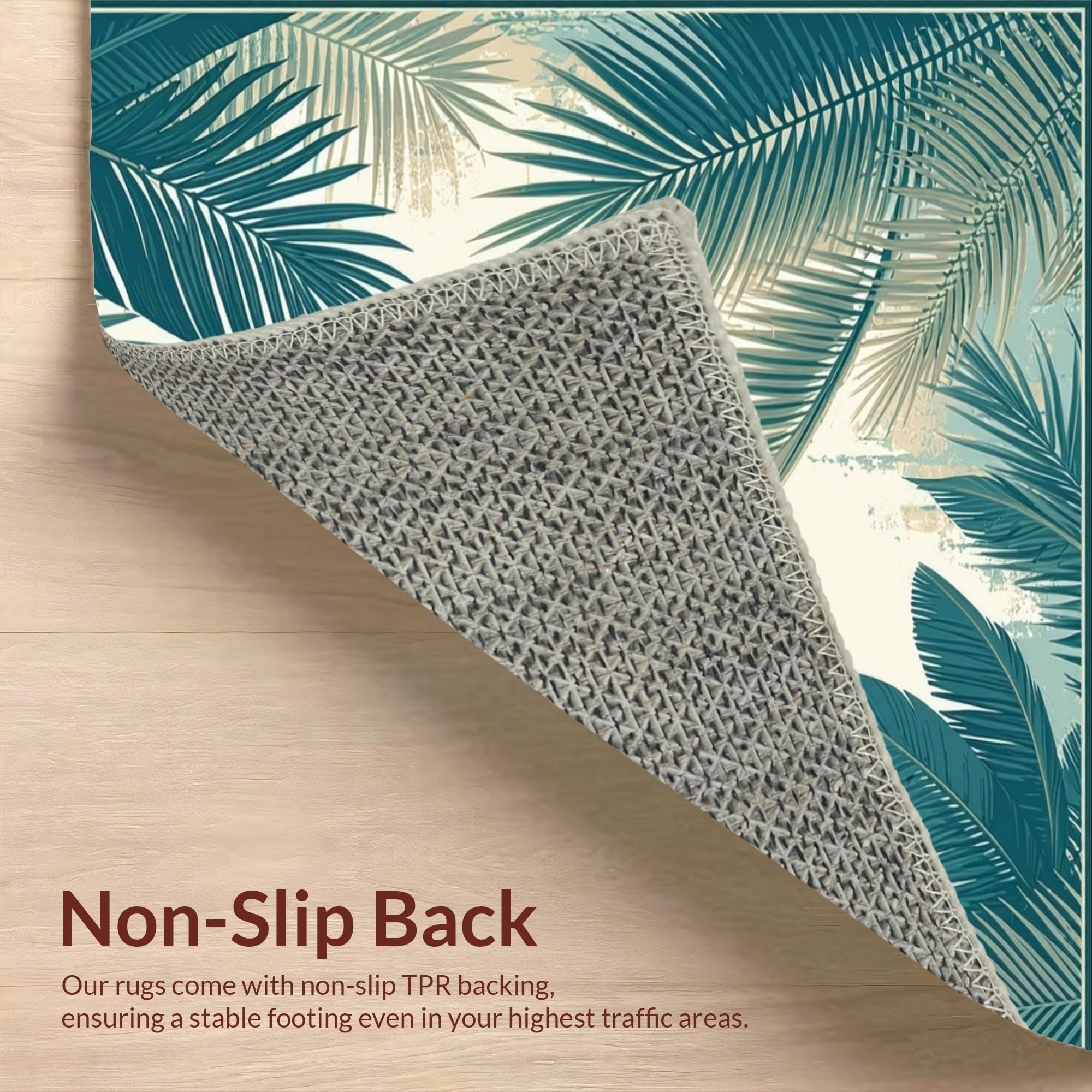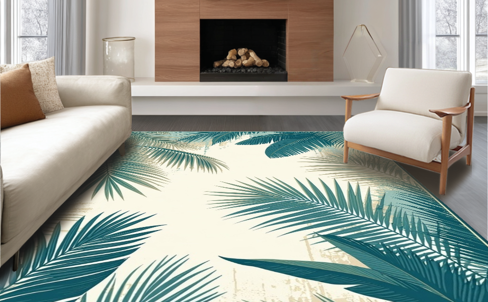 Ultra Soft Area Rug, Non Slip, Stain Resistant, Washable Area Rugs for Living Room, Bedroom, Exotic Vibrant Palmetto Theme(Blue) Overview: