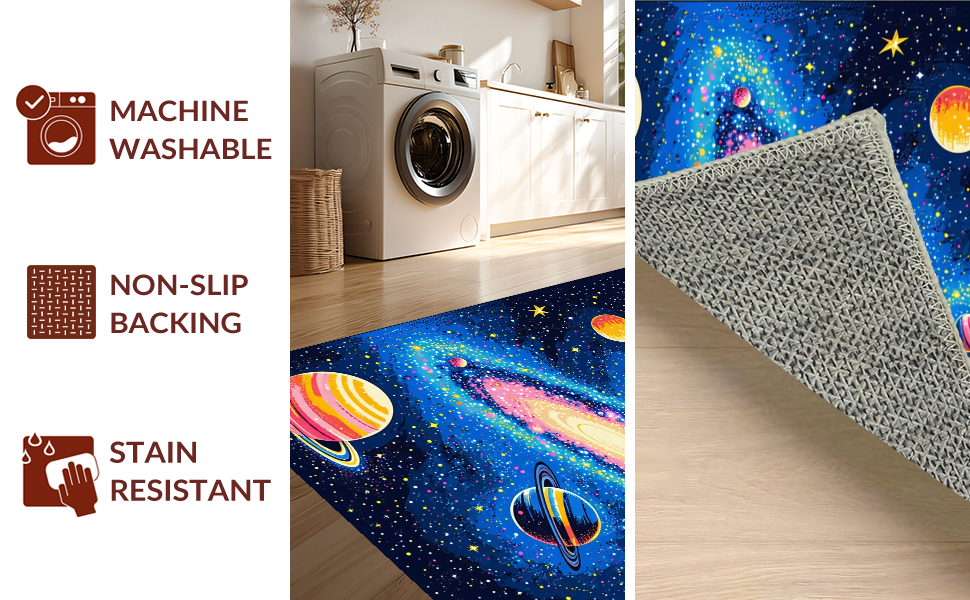 Ultra Soft Area Rug, Non Slip, Stain Resistant, Washable Area Rugs for Living Room, Bedroom, Exploratory Starry Sky Aesthetic(Blue) Overview: