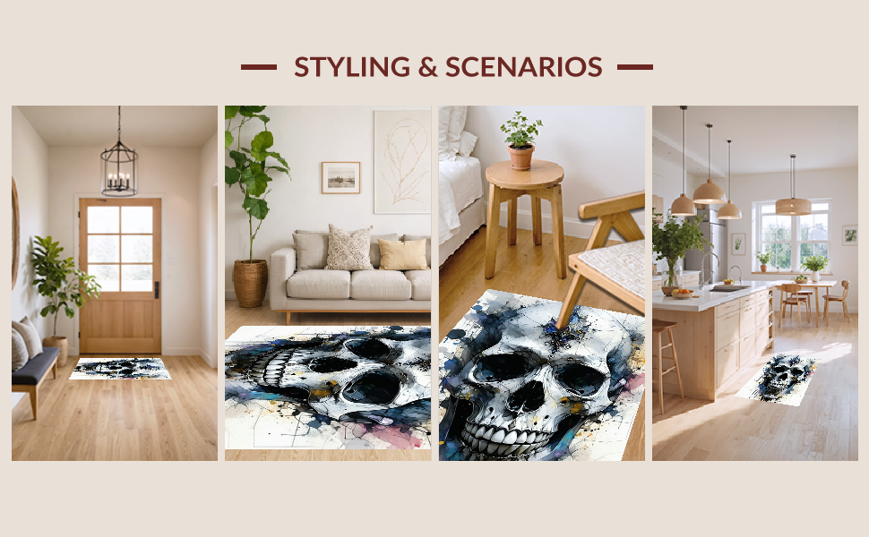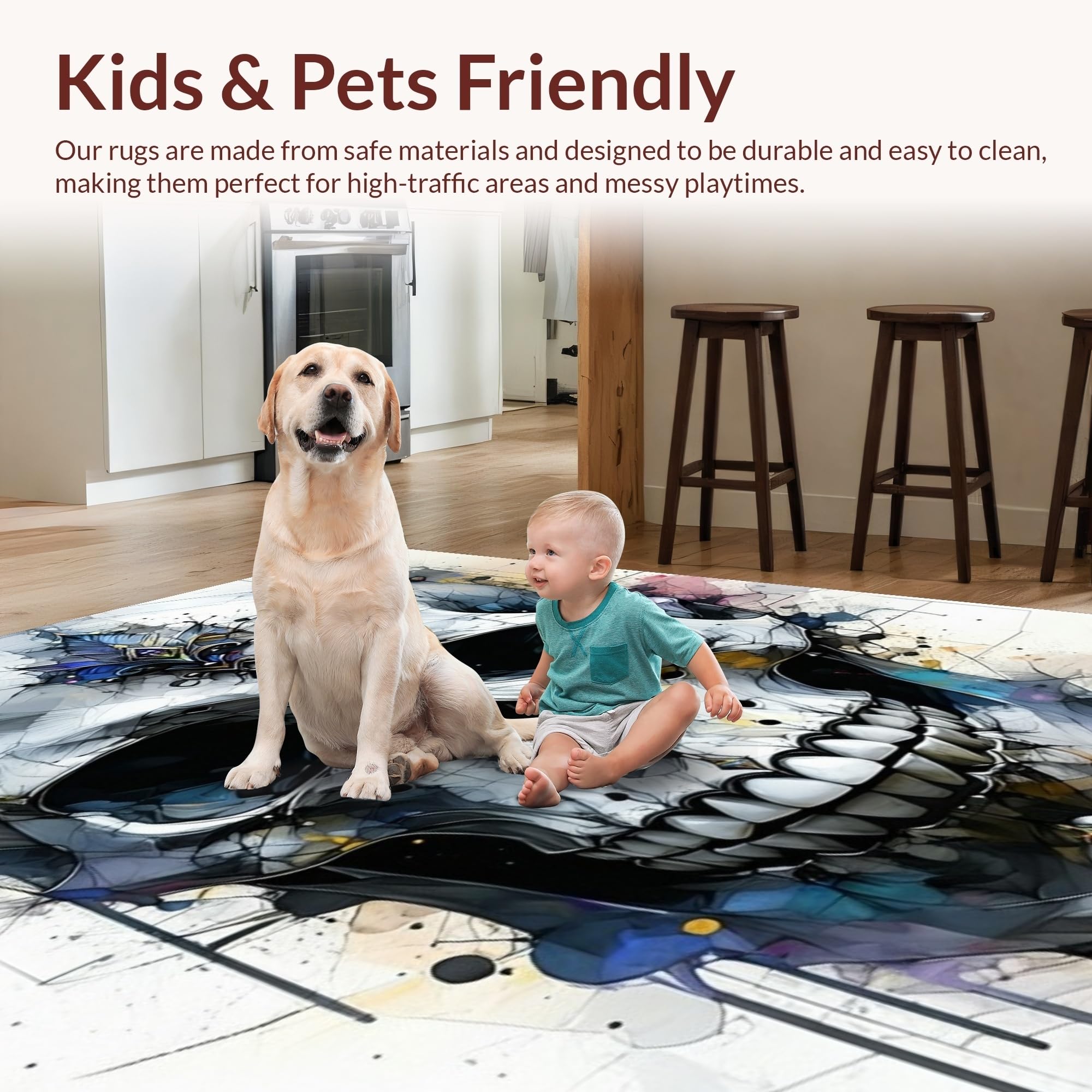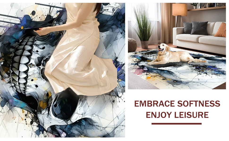Ultra Soft Area Rug, Non Slip, Stain Resistant, Washable Area Rugs for Living Room, Bedroom, Expressive Dark Toned Design(Black) Overview: