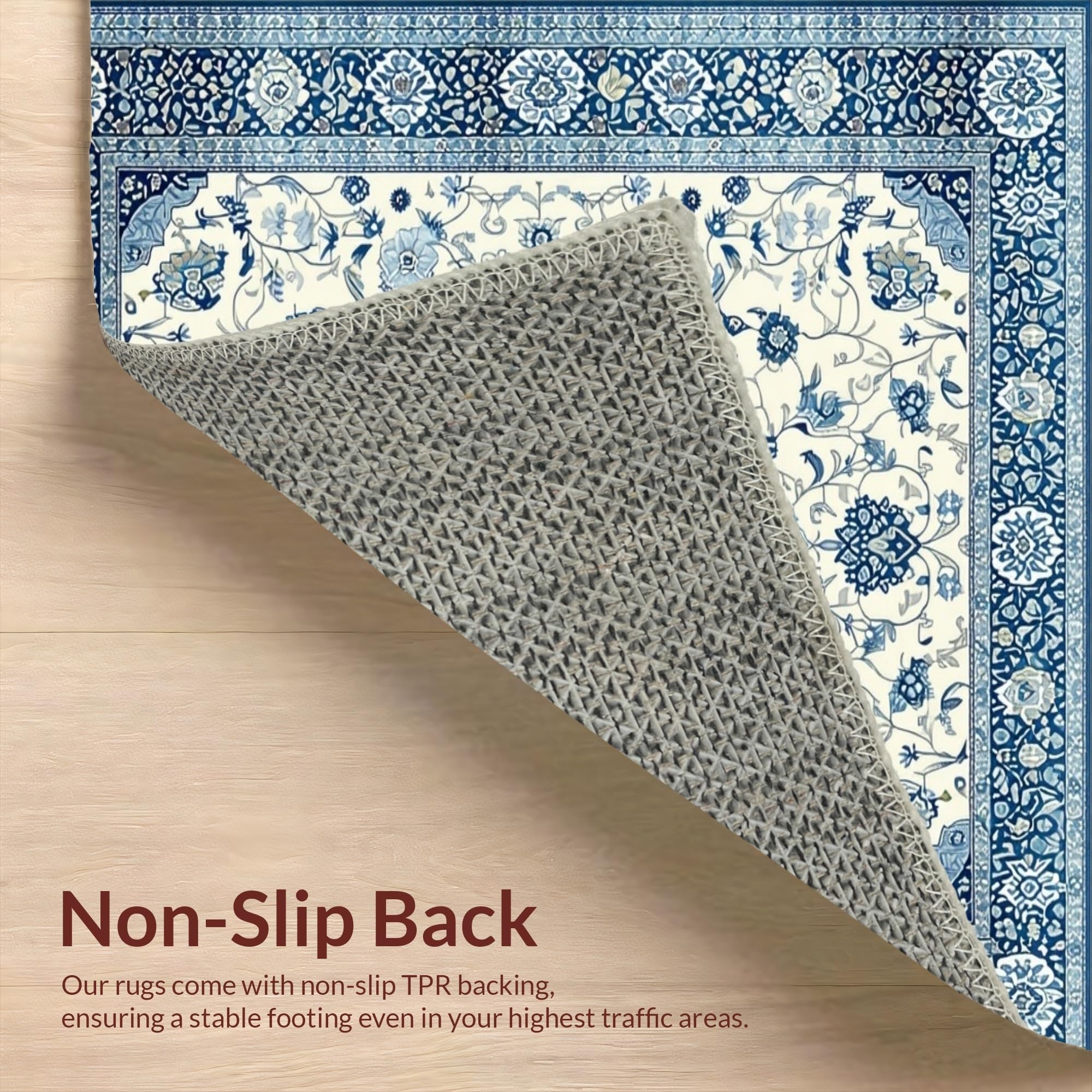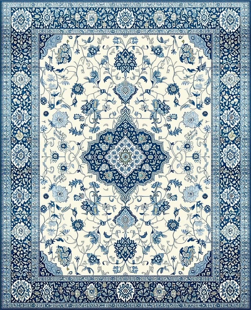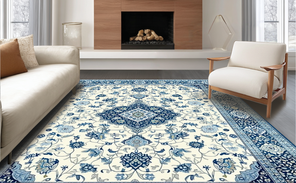Ultra Soft Area Rug, Non Slip, Stain Resistant, Washable Area Rugs for Living Room, Bedroom, Exquisite Medallion Blossom Aesthetic(White) Overview: