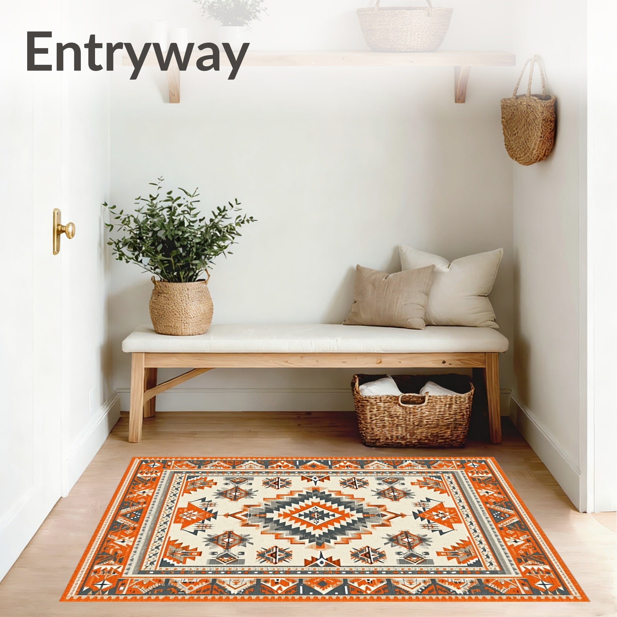Ultra Soft Area Rug, Non Slip, Stain Resistant, Washable Area Rugs for Living Room, Bedroom, Exquisite Tribal Area with Rich Multicolor Southwestern Design(Beige) Overview: