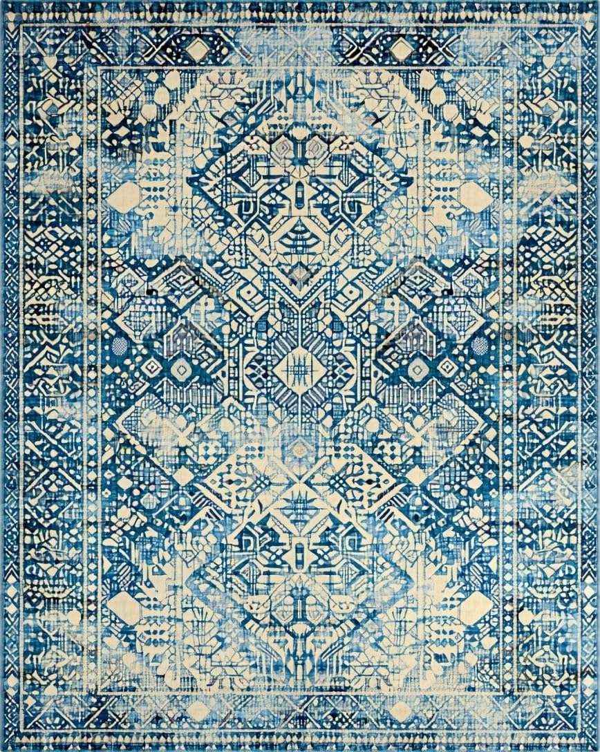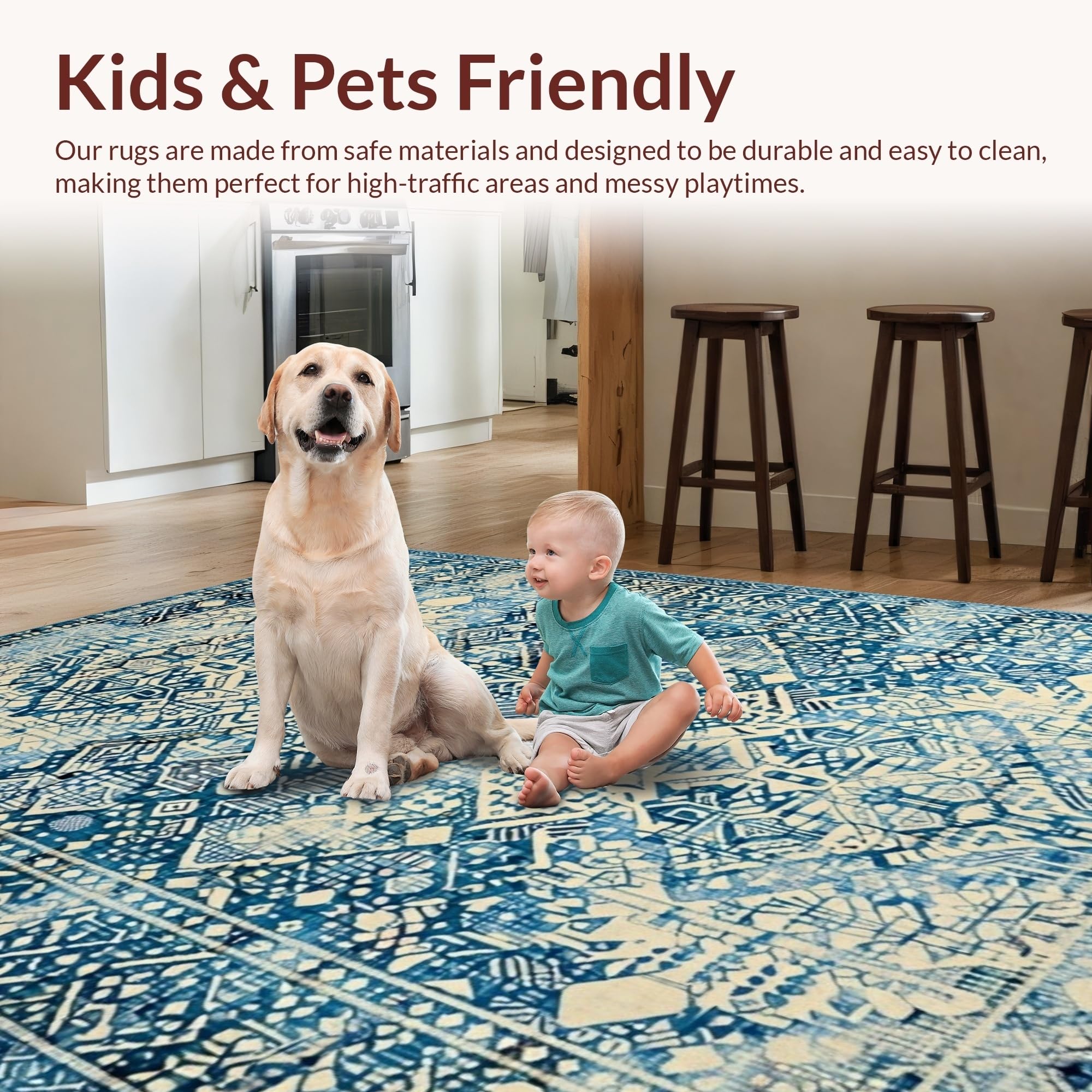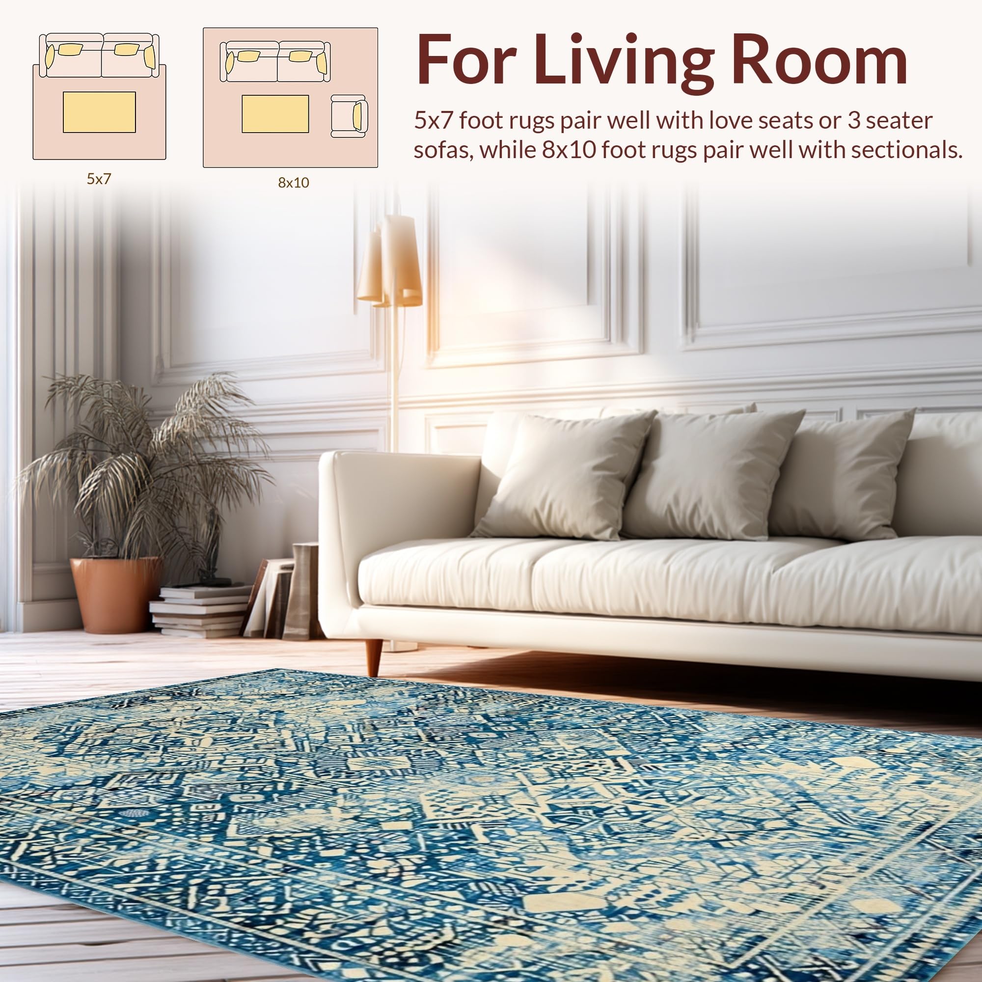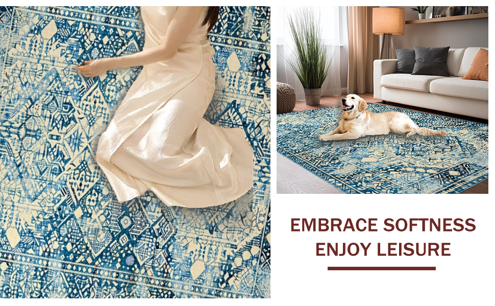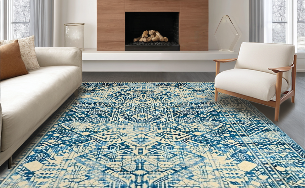 Ultra Soft Area Rug, Non Slip, Stain Resistant, Washable Area Rugs for Living Room, Bedroom, Exquisite Tribal-Inspired Artistry(Blue) Overview: