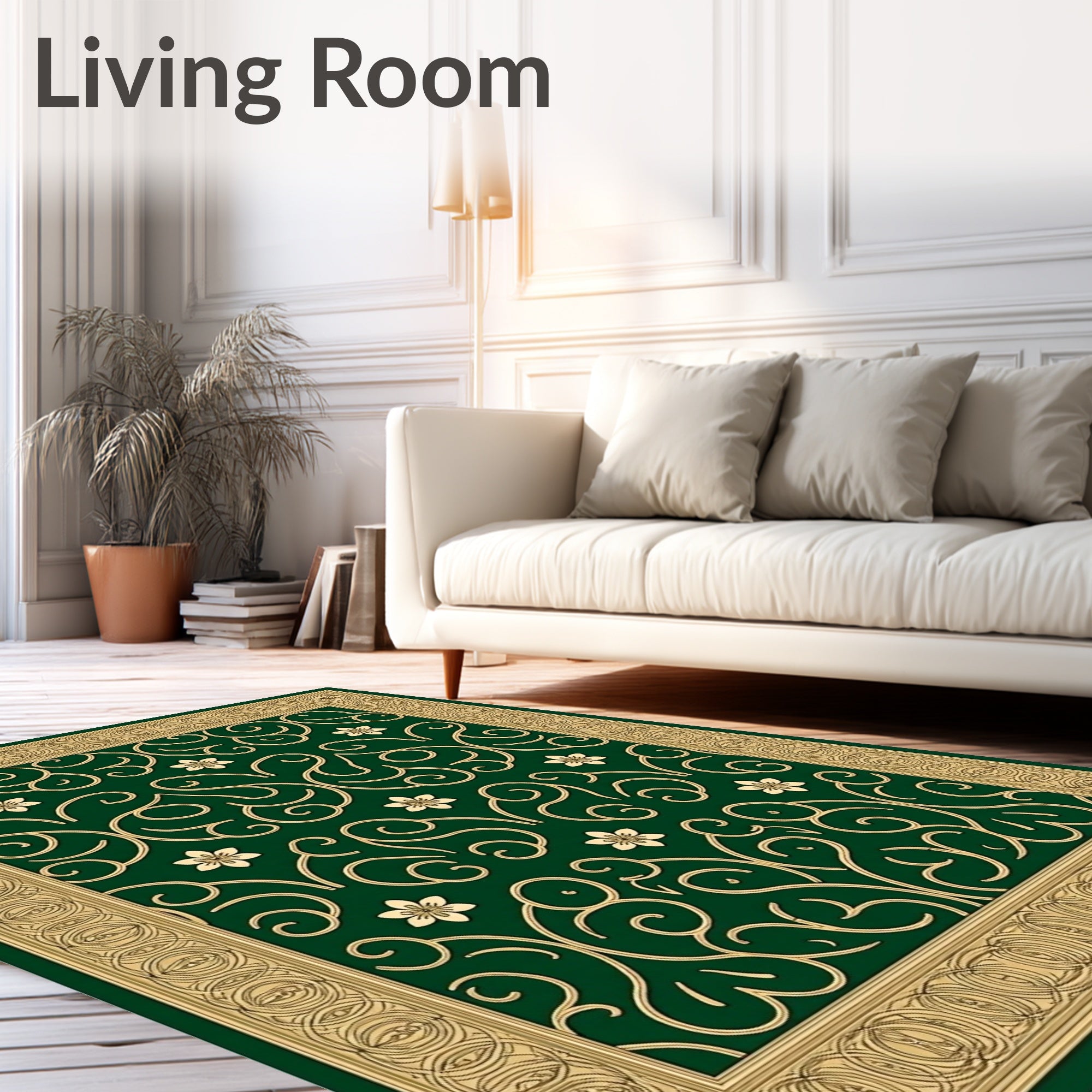 Ultra Soft Area Rug, Non Slip, Stain Resistant, Washable Area Rugs for Living Room, Bedroom, Extravagant Grandiose Splendid Captivating Enchanting(Green) Overview: