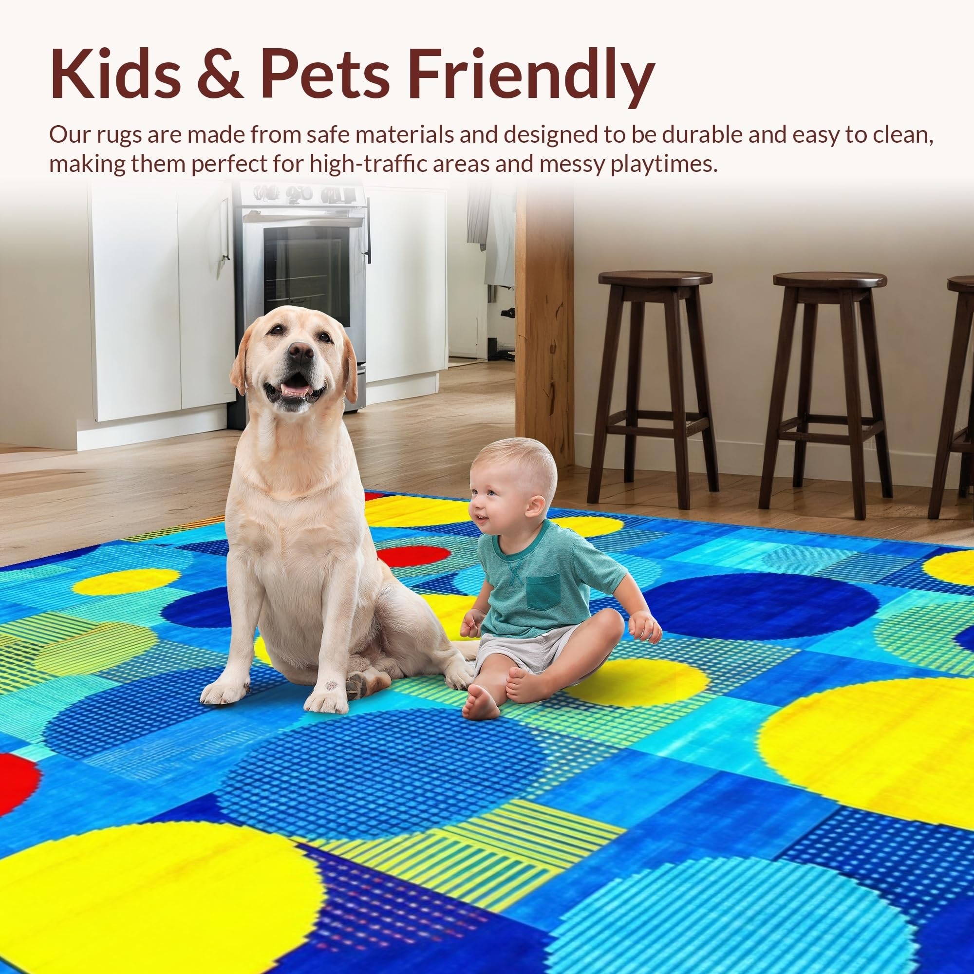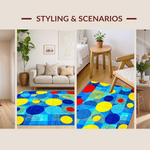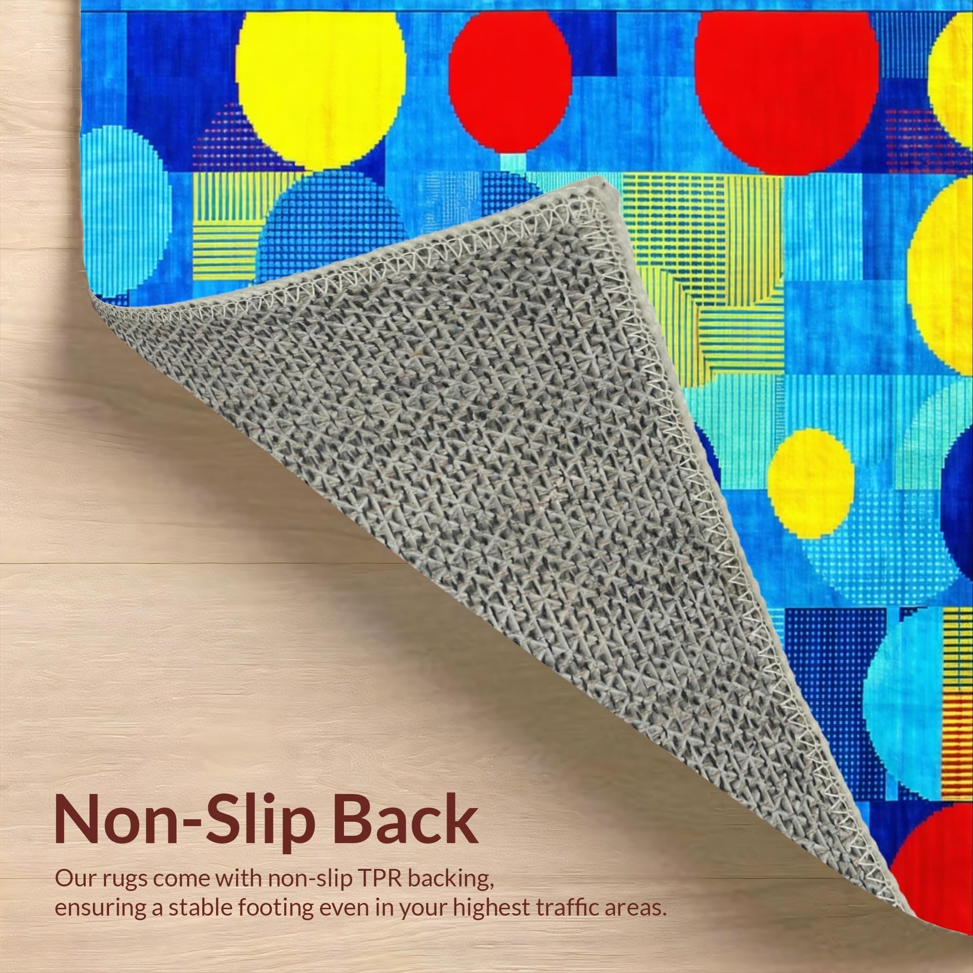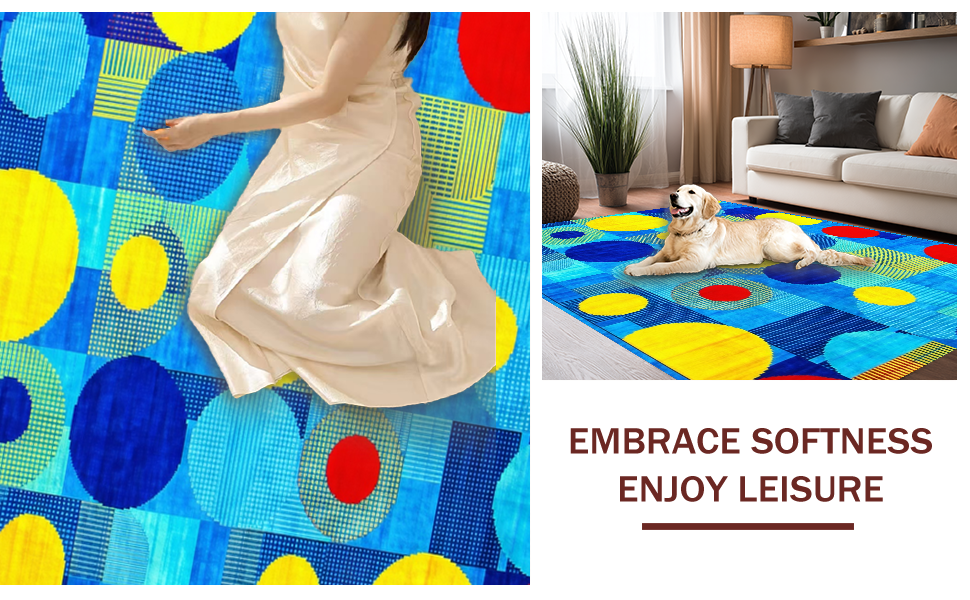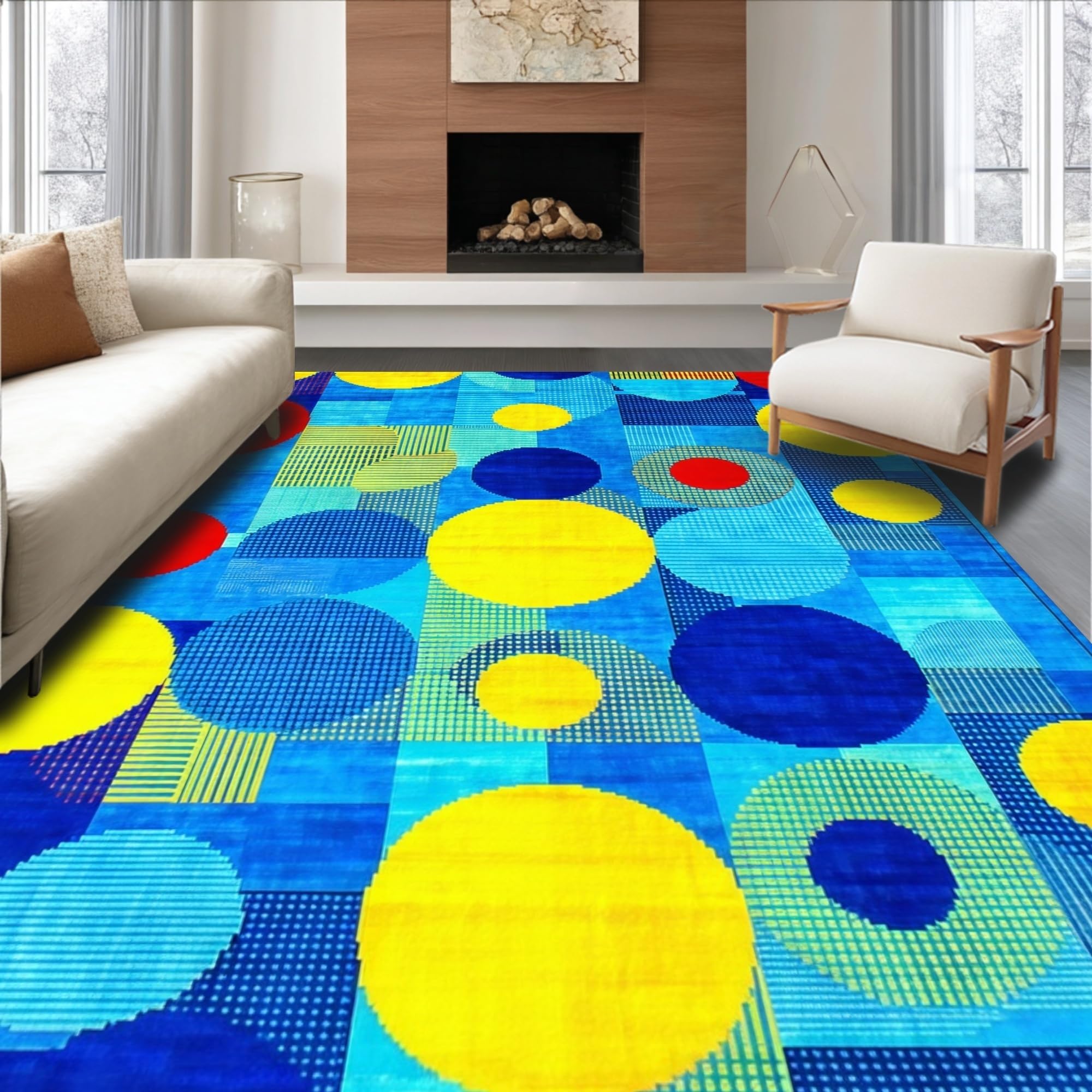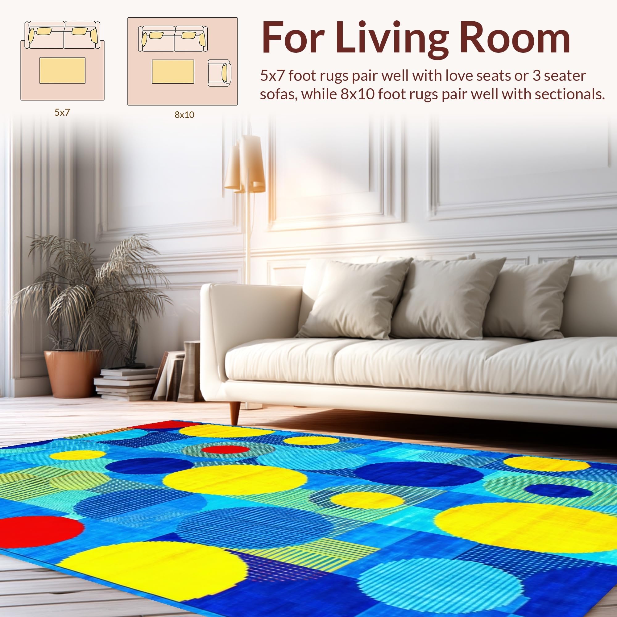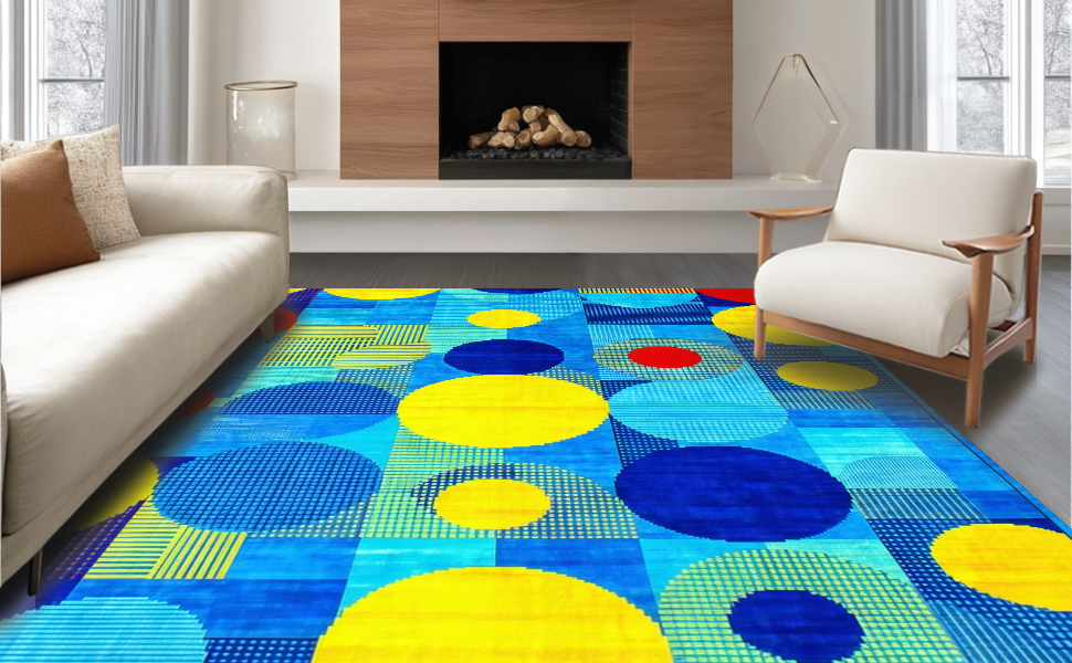 Ultra Soft Area Rug, Non Slip, Stain Resistant, Washable Area Rugs for Living Room, Bedroom, Eye-Catching Blue Circular Visuals(Blue) Overview:
