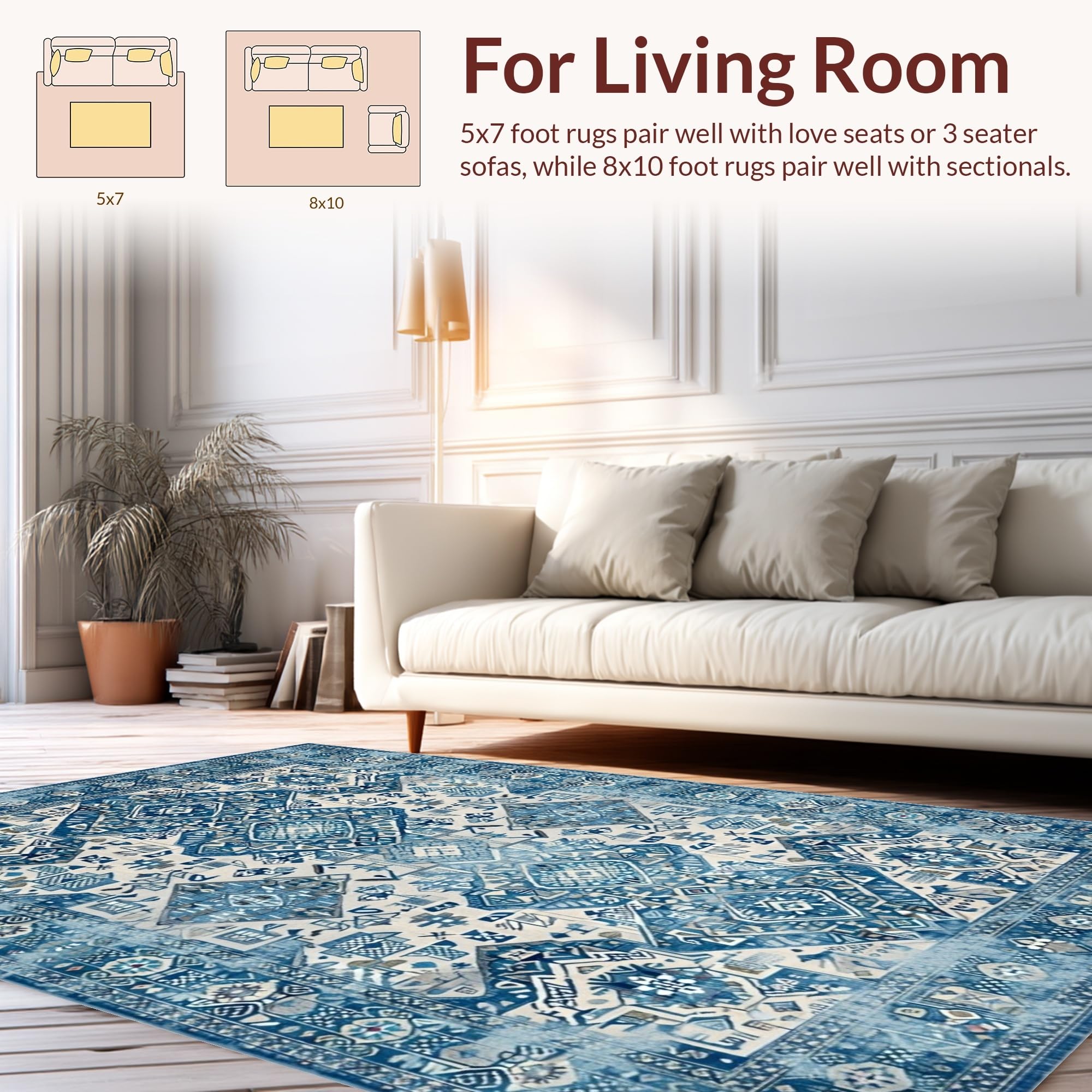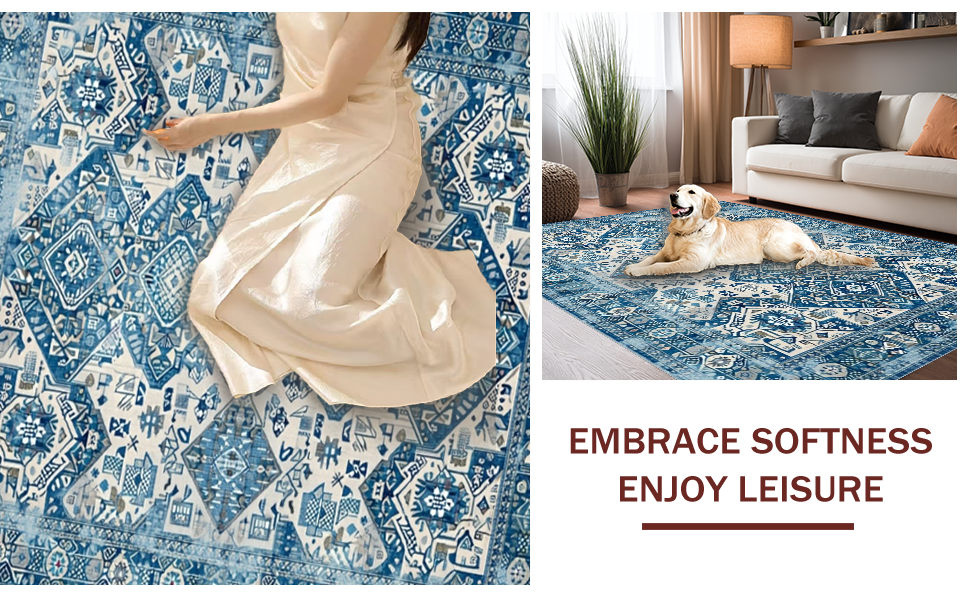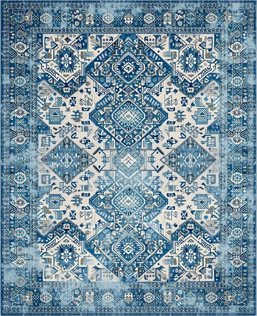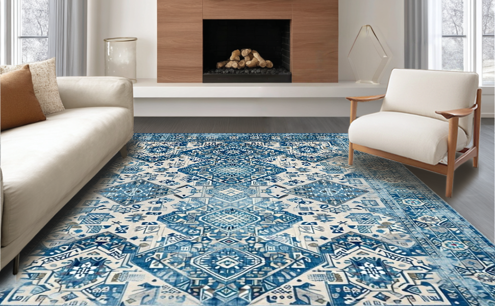 Ultra Soft Area Rug, Non Slip, Stain Resistant, Washable Area Rugs for Living Room, Bedroom, Eye-catching Contemporary Symmetrical Layout(Blue) Overview: