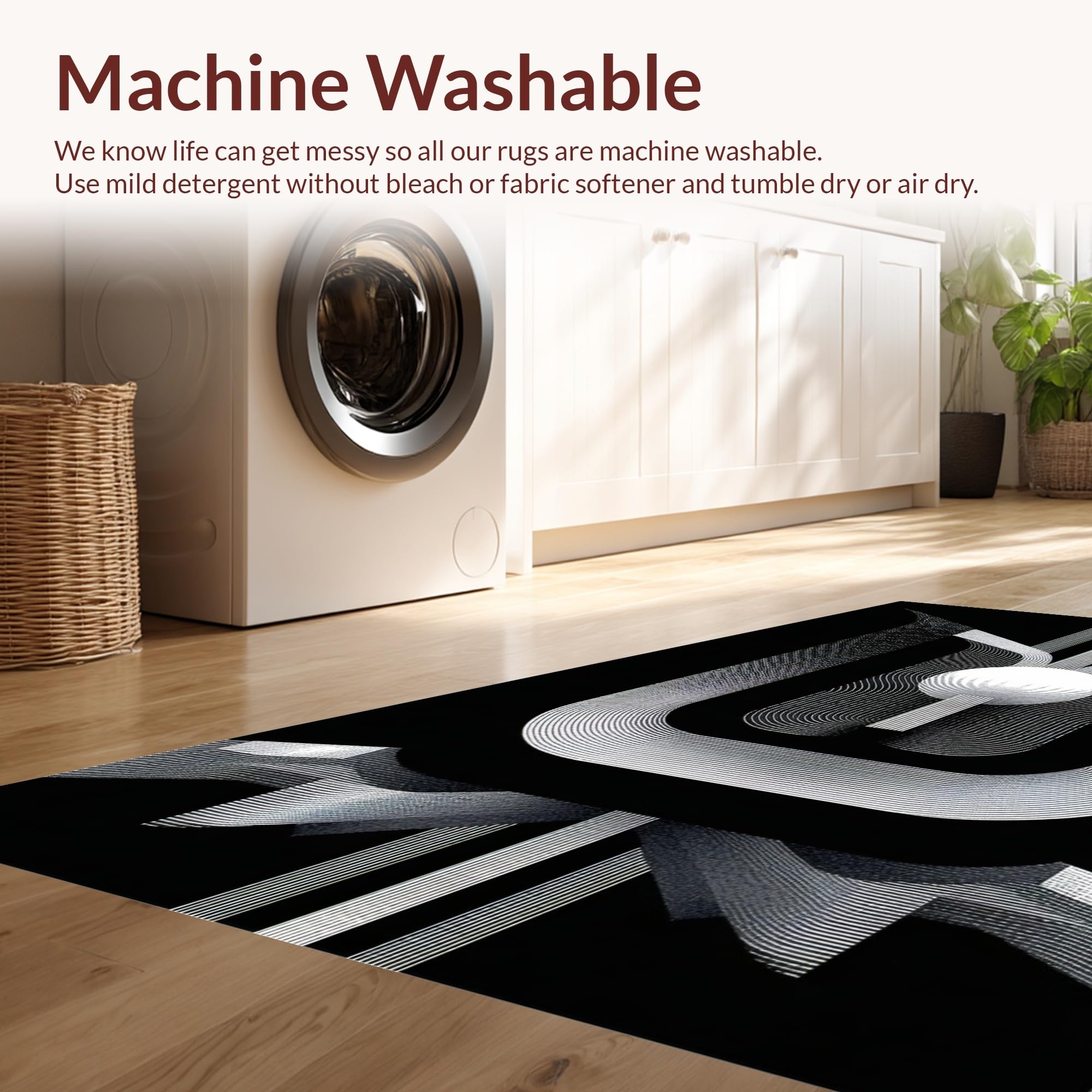 - Machine Washable: Our rugs can be easily thrown in the wash machine.