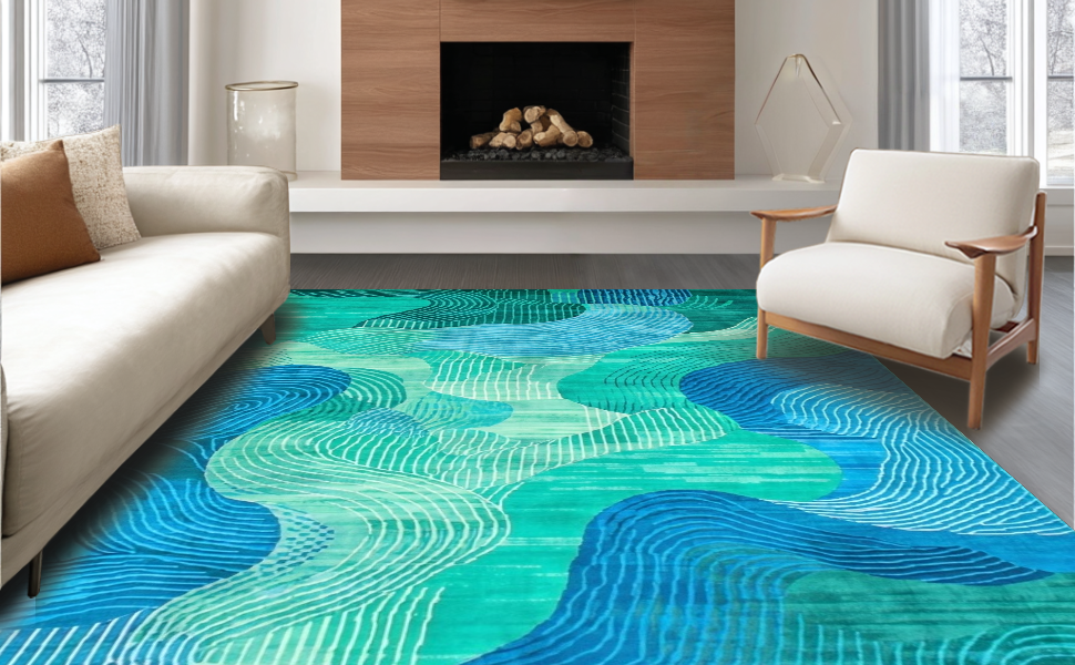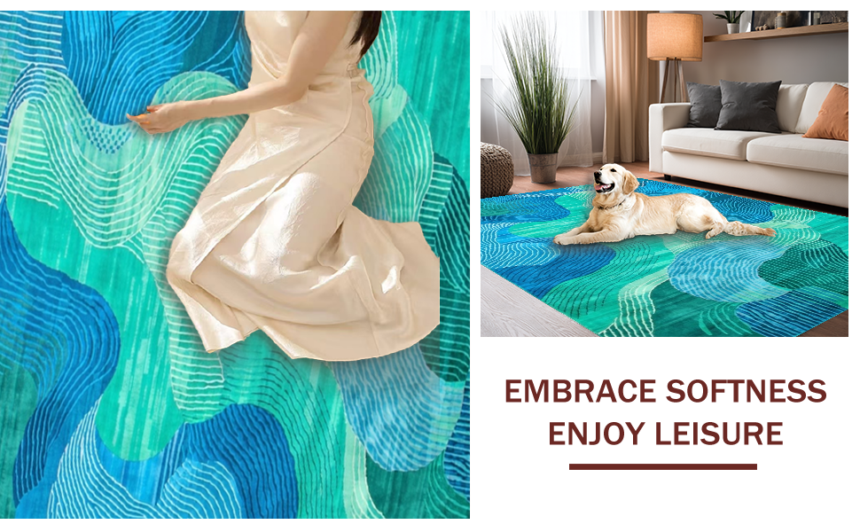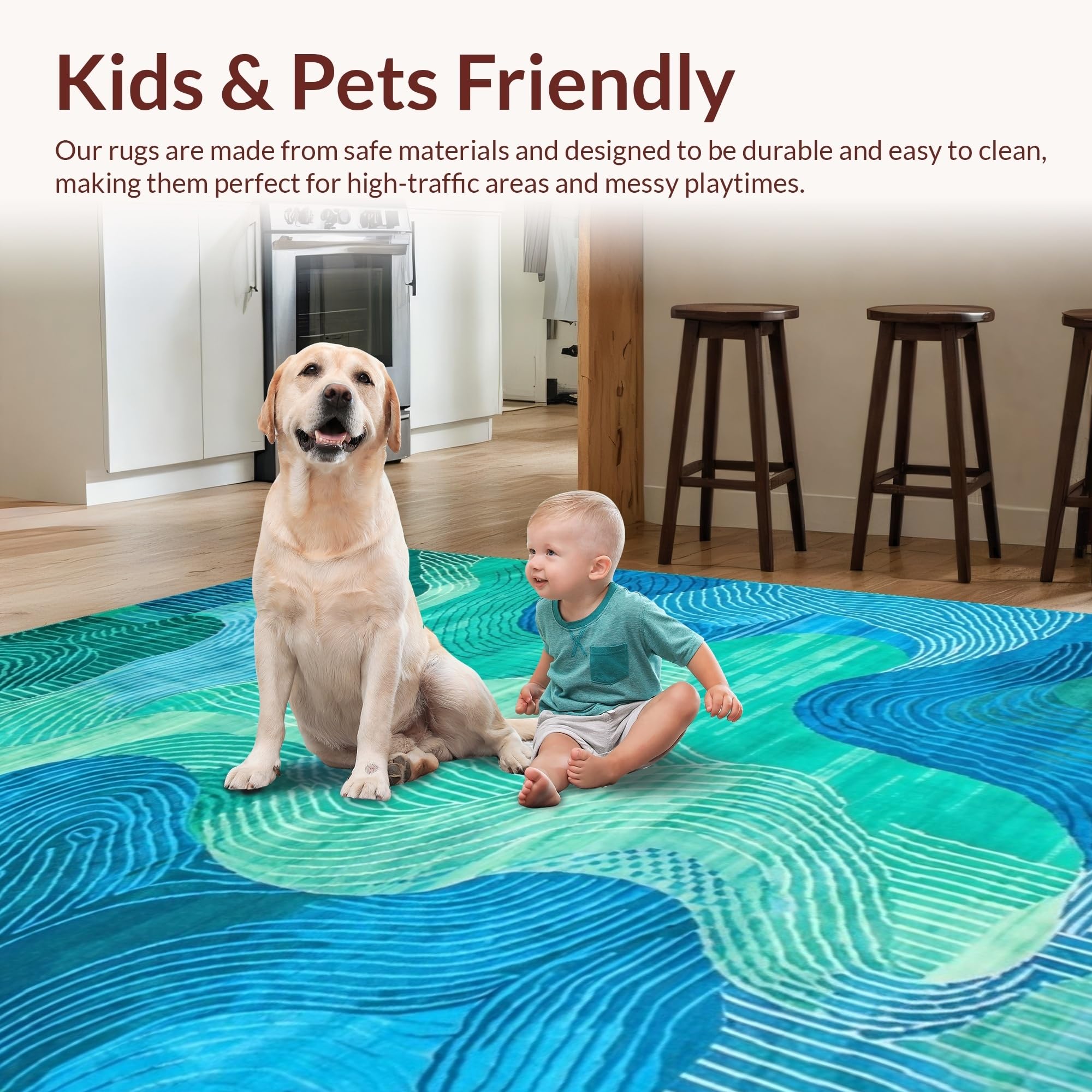 Ultra Soft Area Rug, Non Slip, Stain Resistant, Washable Area Rugs for Living Room, Bedroom, Eye-Catching Playful Color Fusion(Blue) Overview: