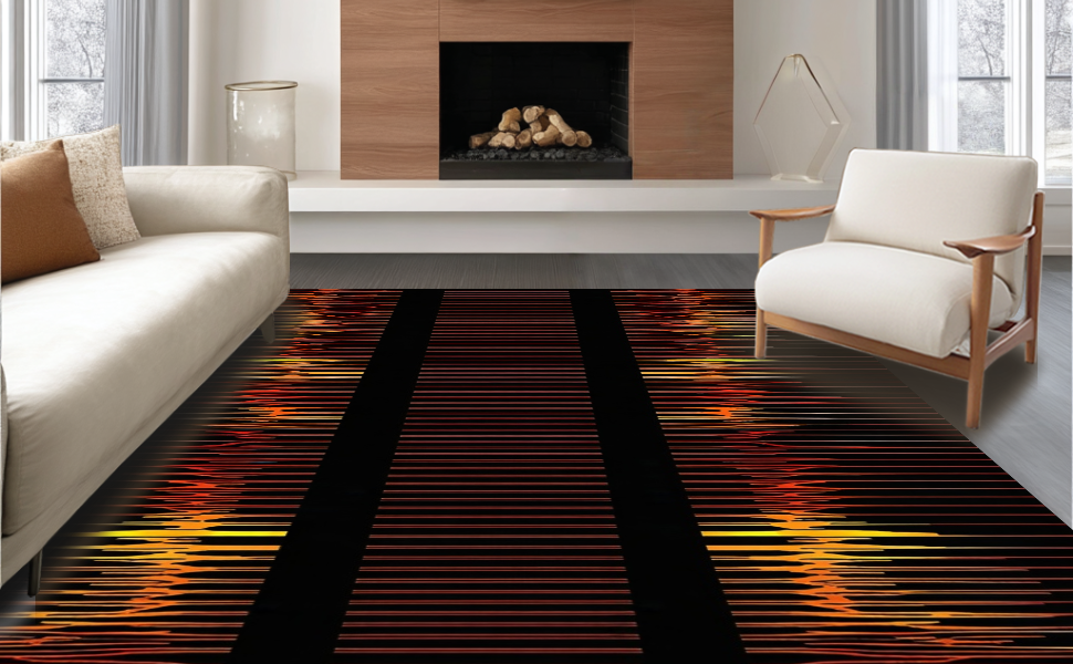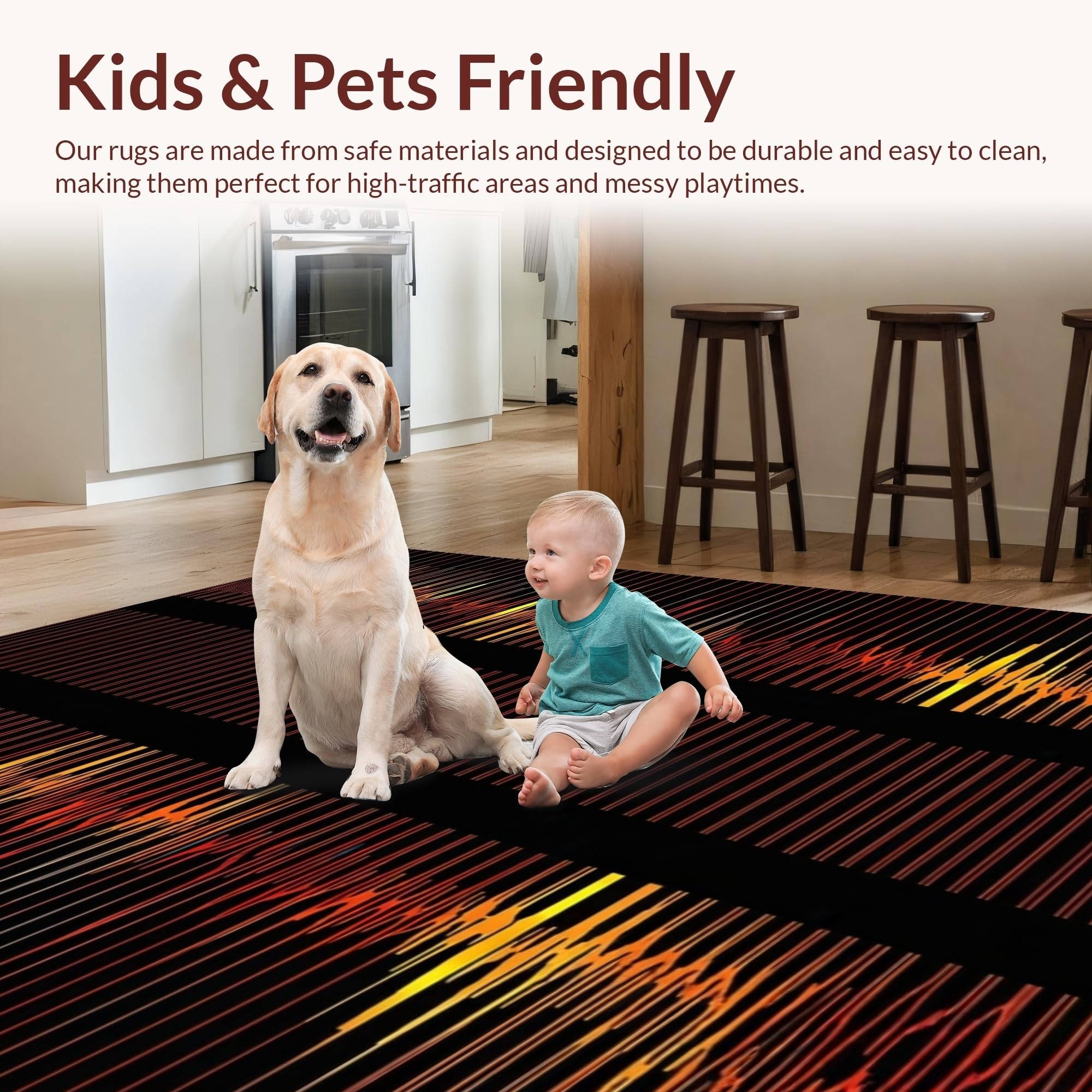 Ultra Soft Area Rug, Non Slip, Stain Resistant, Washable Area Rugs for Living Room, Bedroom, Eye-Catching Retro Optical Design(Red) Overview:
