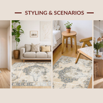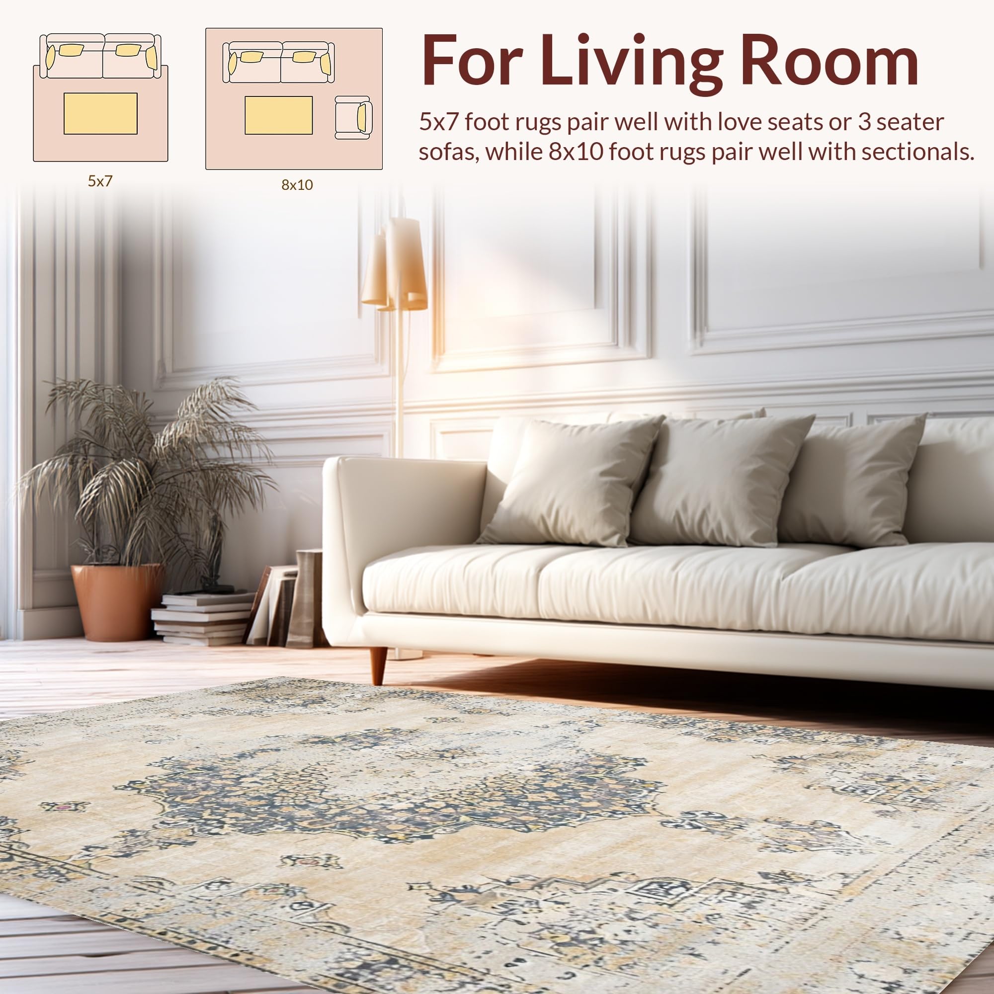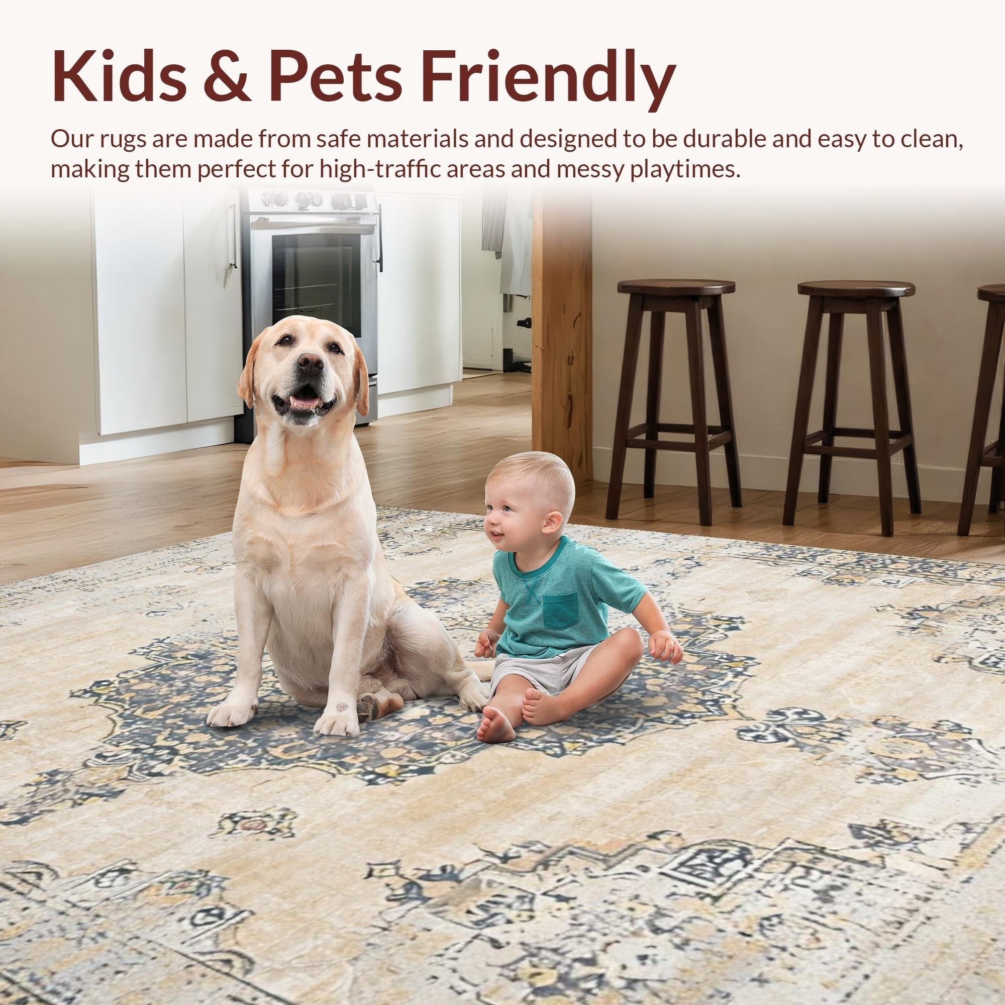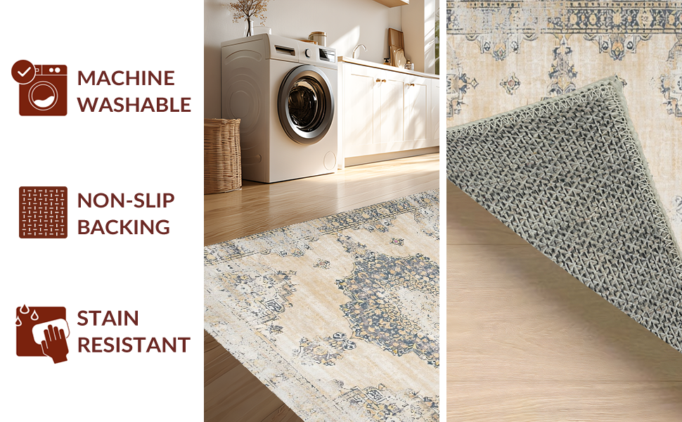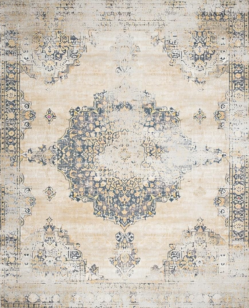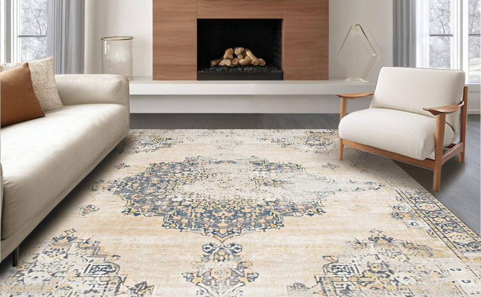 Ultra Soft Area Rug, Non Slip, Stain Resistant, Washable Area Rugs for Living Room, Bedroom, Faded Creamy Artful Composition(Beige) Overview: