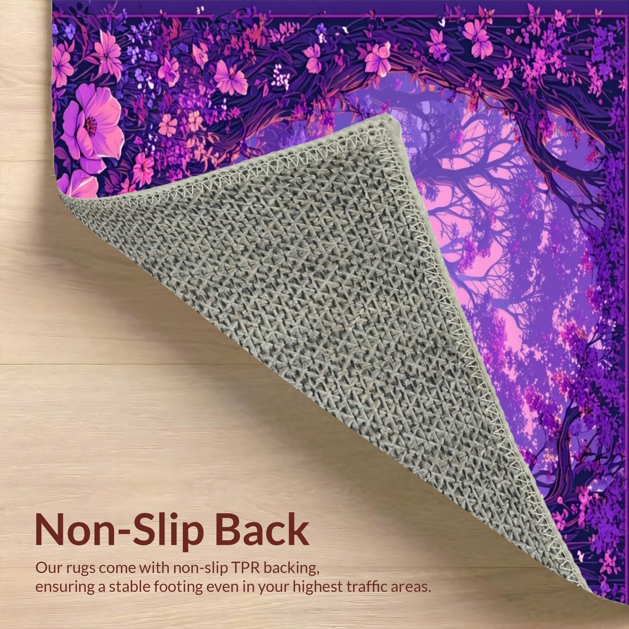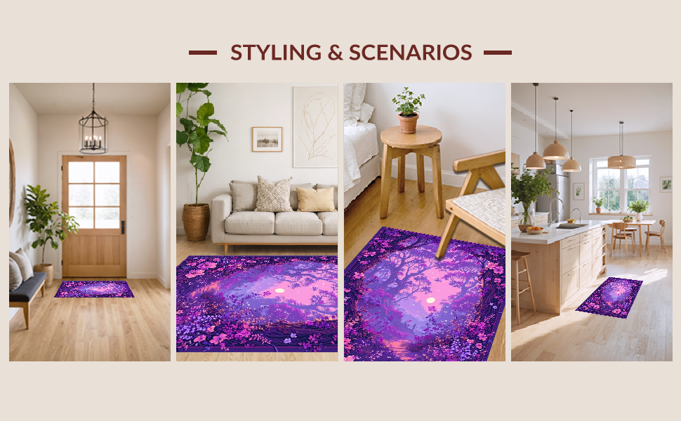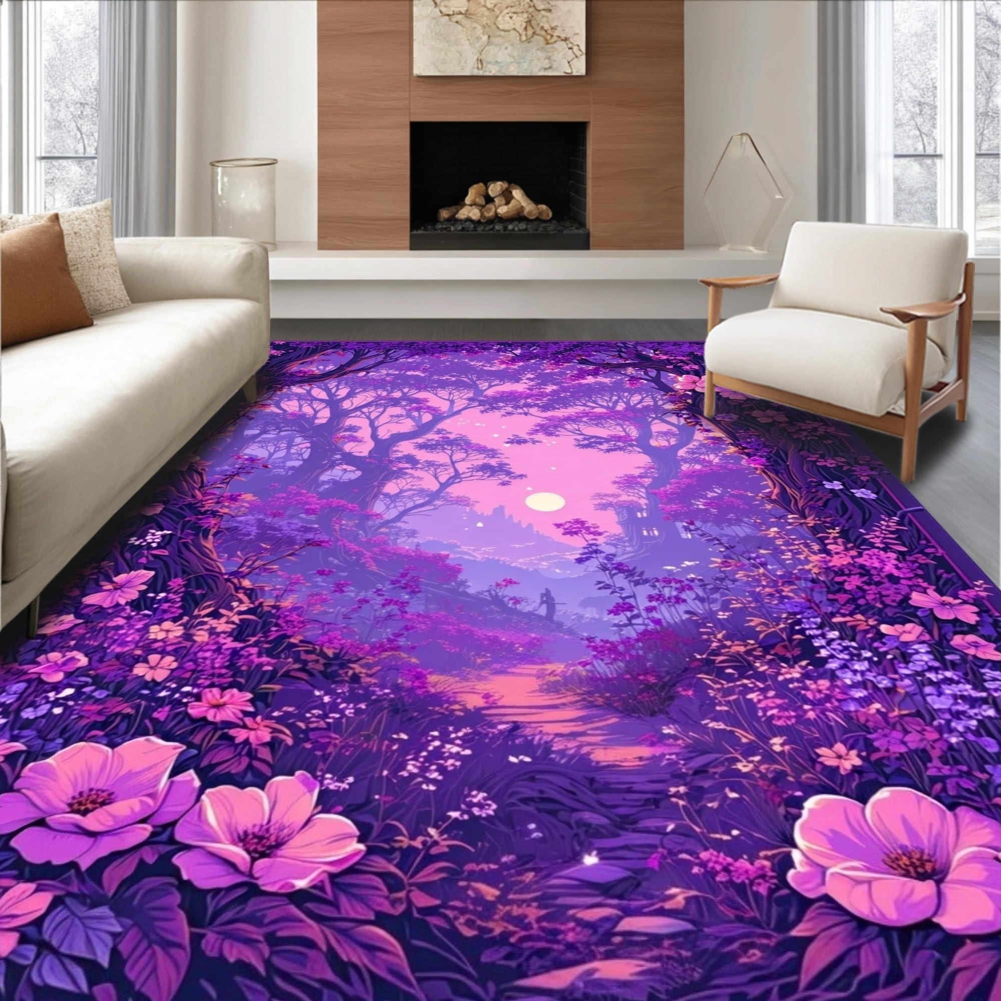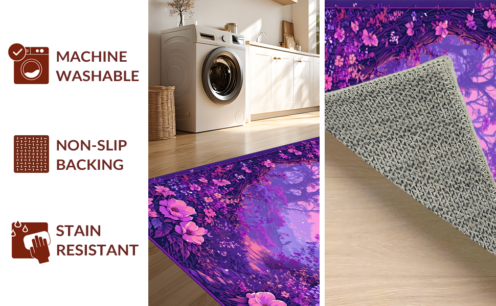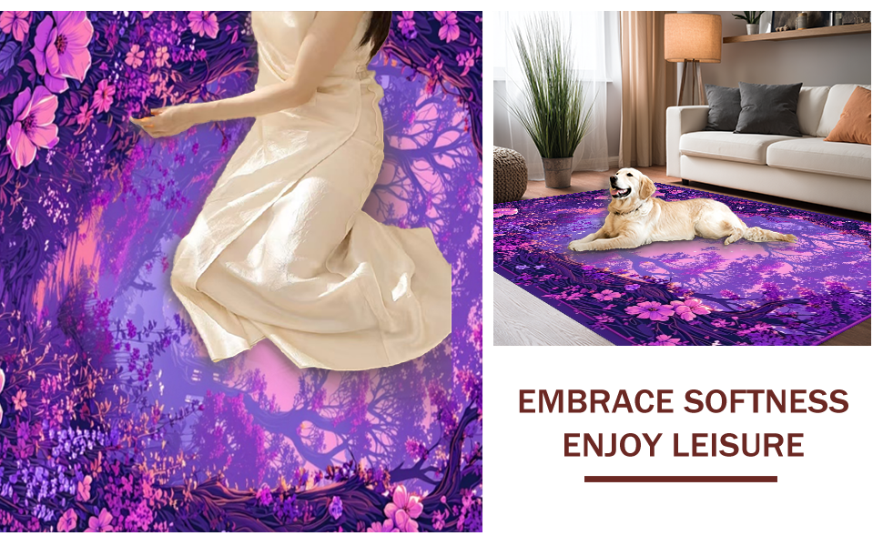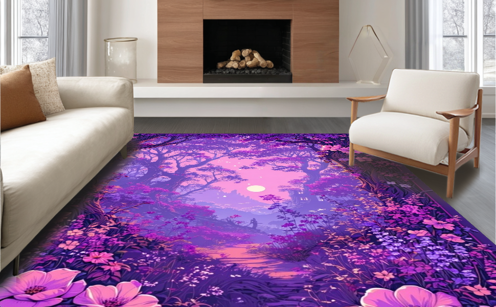Ultra Soft Area Rug, Non Slip, Stain Resistant, Washable Area Rugs for Living Room, Bedroom, Fairy Tale Floral Fantasy(Purple) Overview: