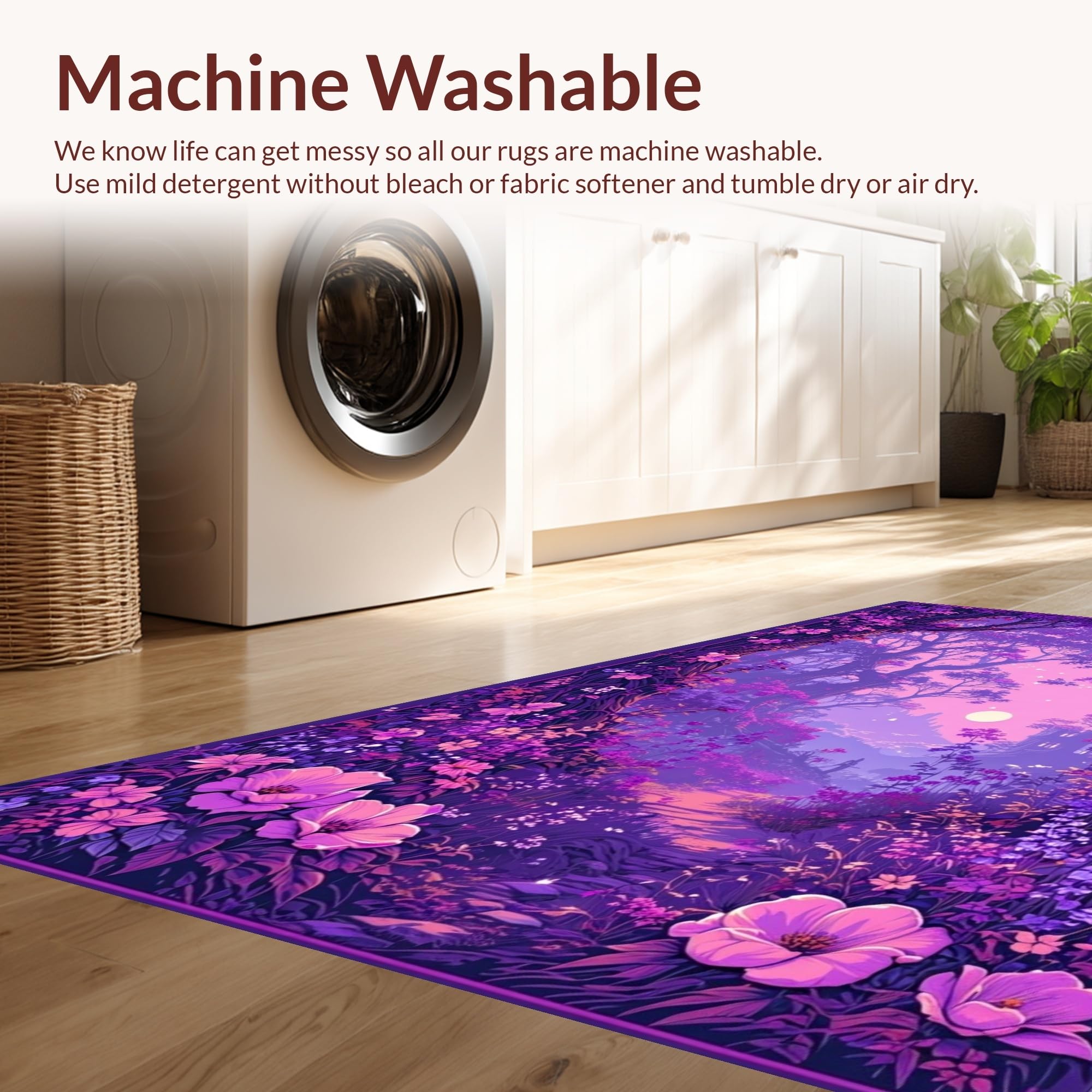 - Machine Washable: Our rugs can be easily thrown in the wash machine.