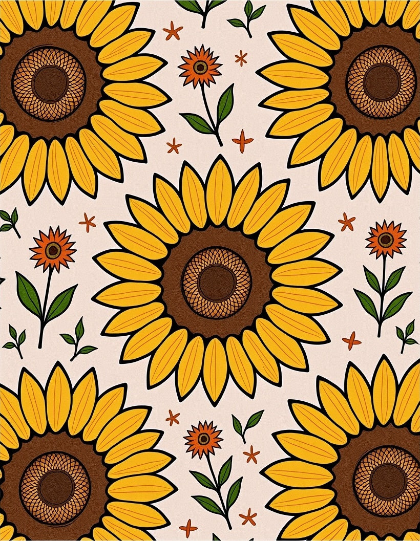 Fall Sunflower Field Medallion with Country Farmhouse Florals(Yellow)