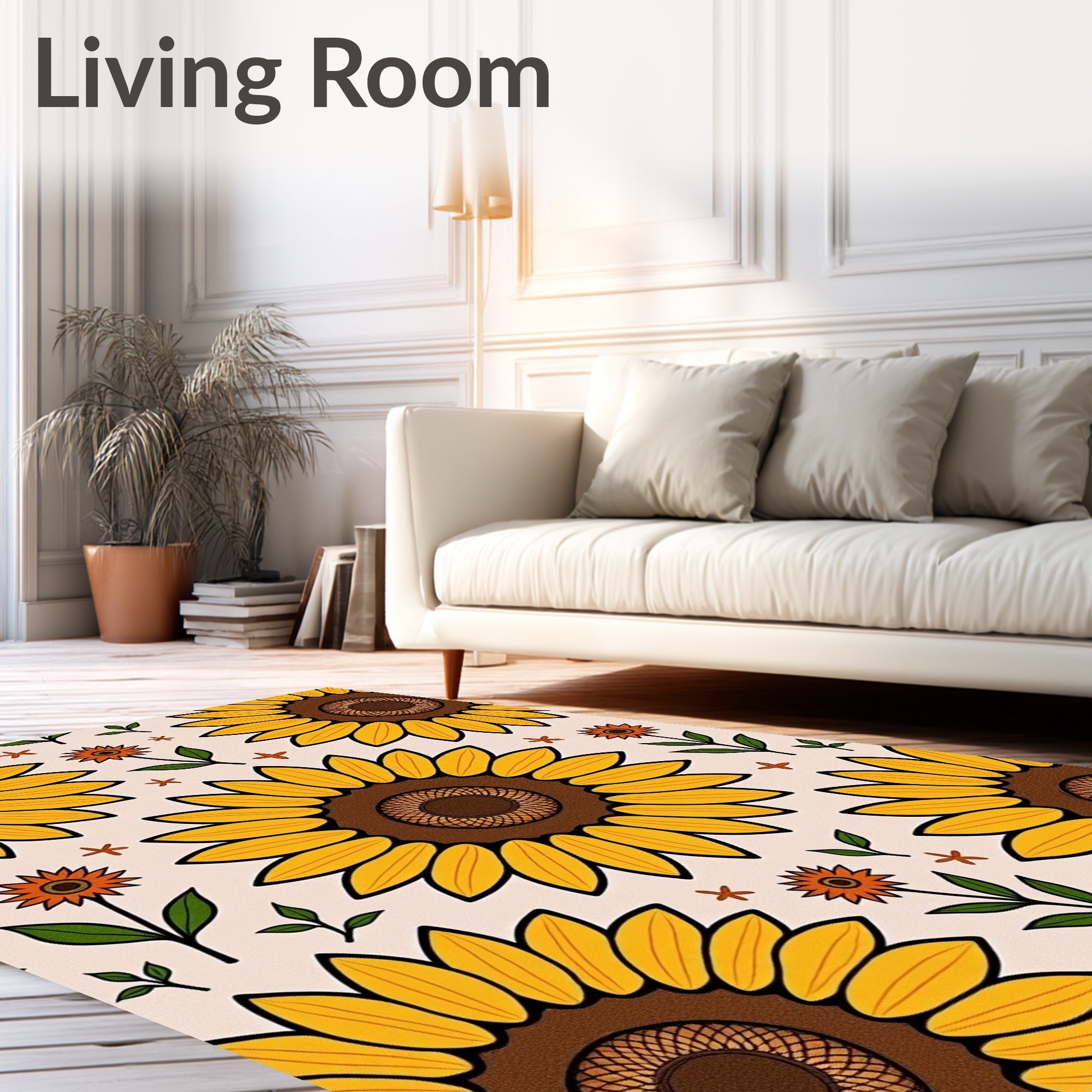 Ultra Soft Area Rug, Non Slip, Stain Resistant, Washable Area Rugs for Living Room, Bedroom, Fall Sunflower Field Medallion with Country Farmhouse Florals(Yellow) Overview: