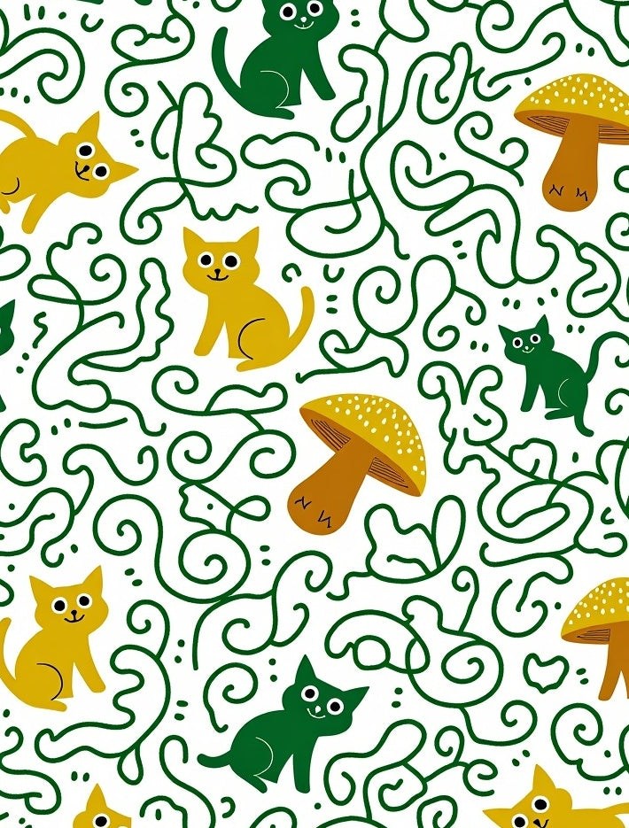 Fantasy Forest Cat Adventure Illustrated Animal(Green)