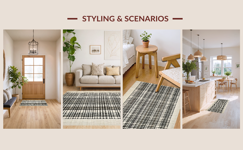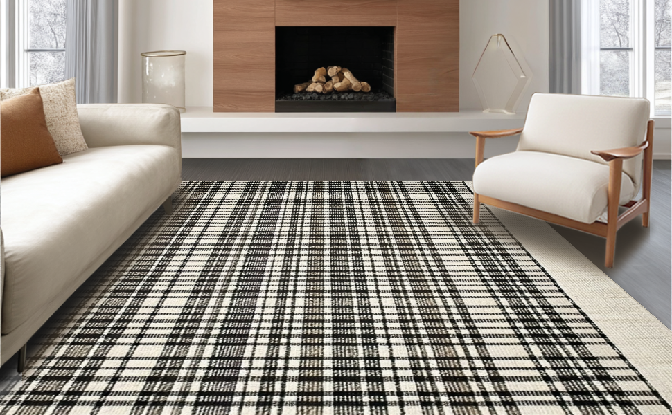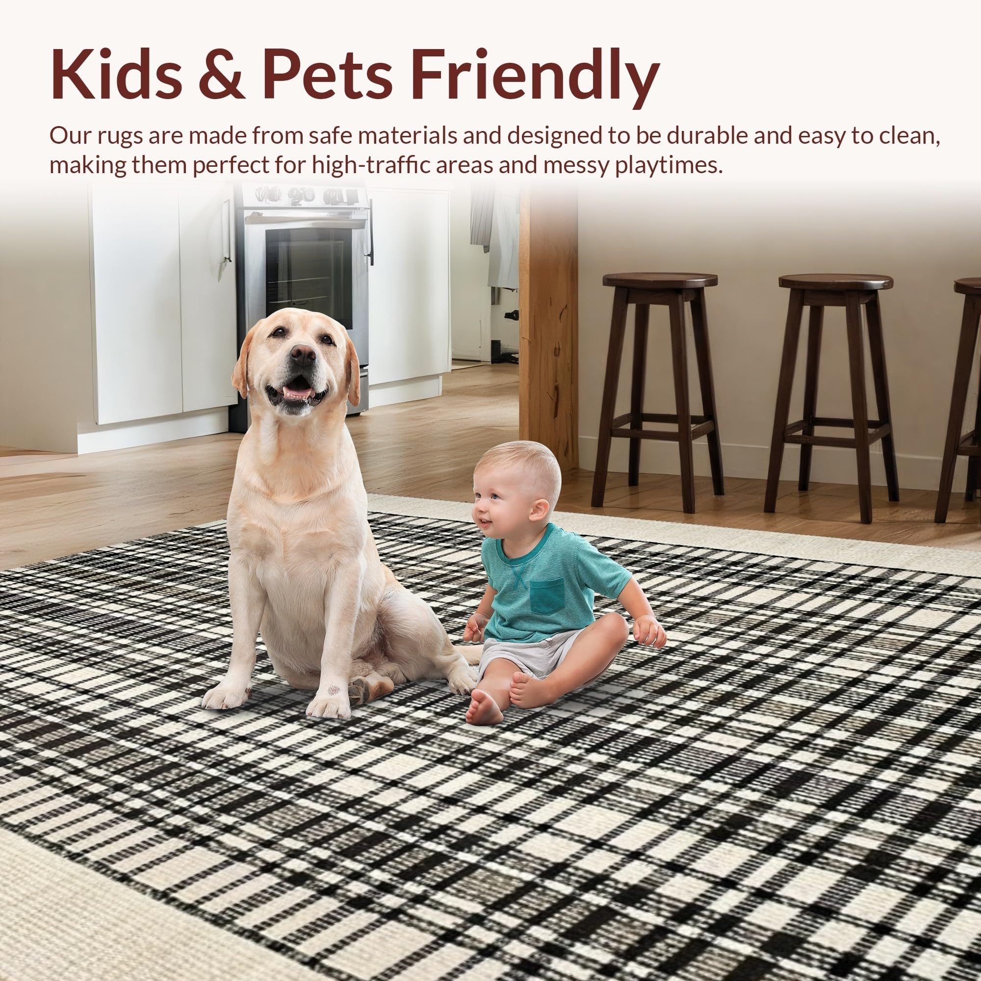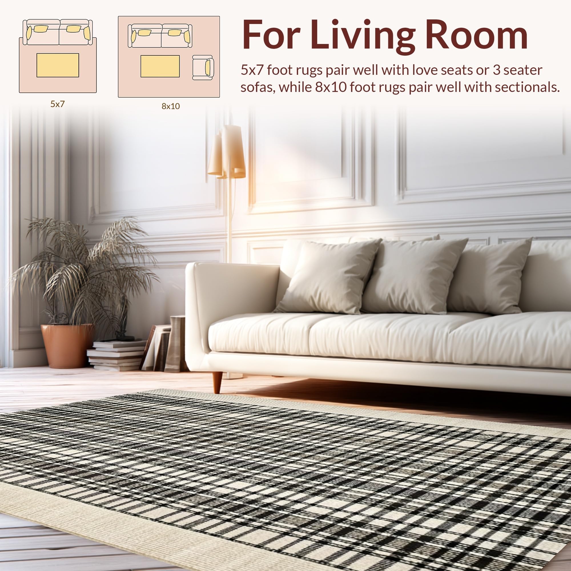 Ultra Soft Area Rug, Non Slip, Stain Resistant, Washable Area Rugs for Living Room, Bedroom, Farmhouse Abstract Black and Beige Design(Beige) Overview: