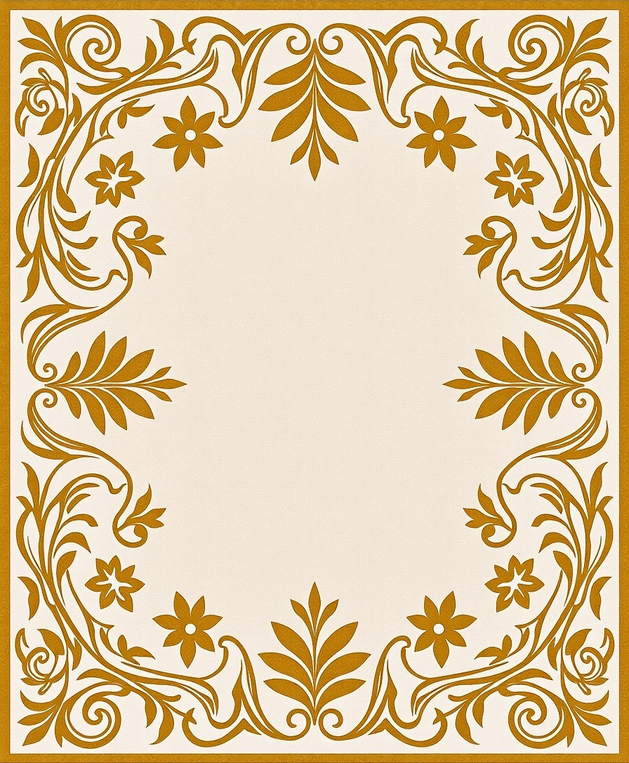 Farmhouse Botanical Vine Scroll with Traditional Floral Motifs(Gold)