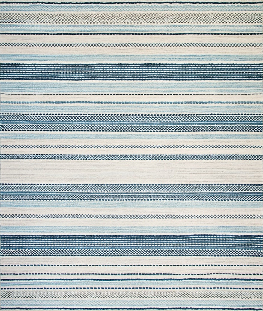 Farmhouse Braid Blue Beige Stripe Motif Rustic Woven(Blue)