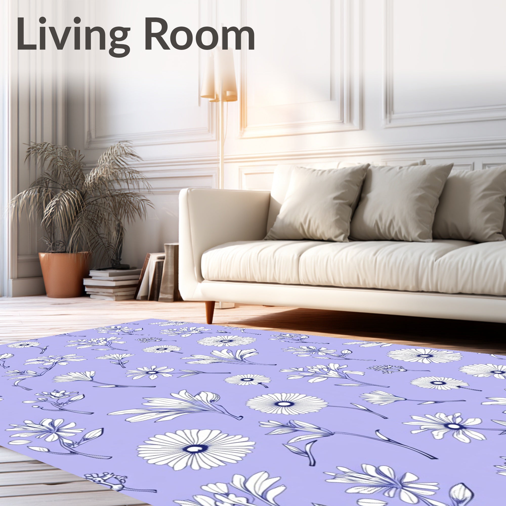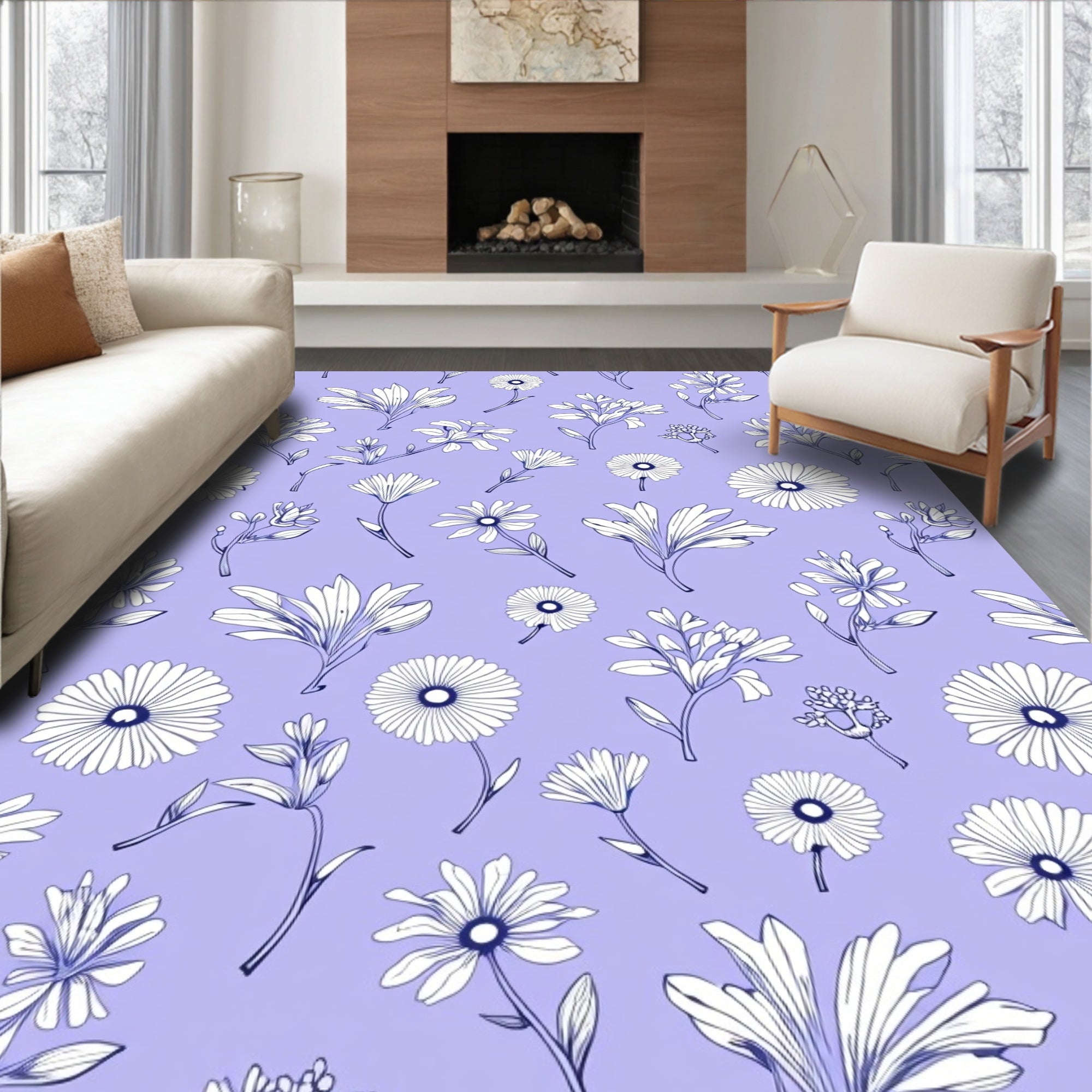 Flatwoven High Traffic Area Rug, Farmhouse Floral Revival Vintage Design, Non Slip, Stain Resistant, Washable Area Rugs for Living Room, Bedroom (Purple) Overview: