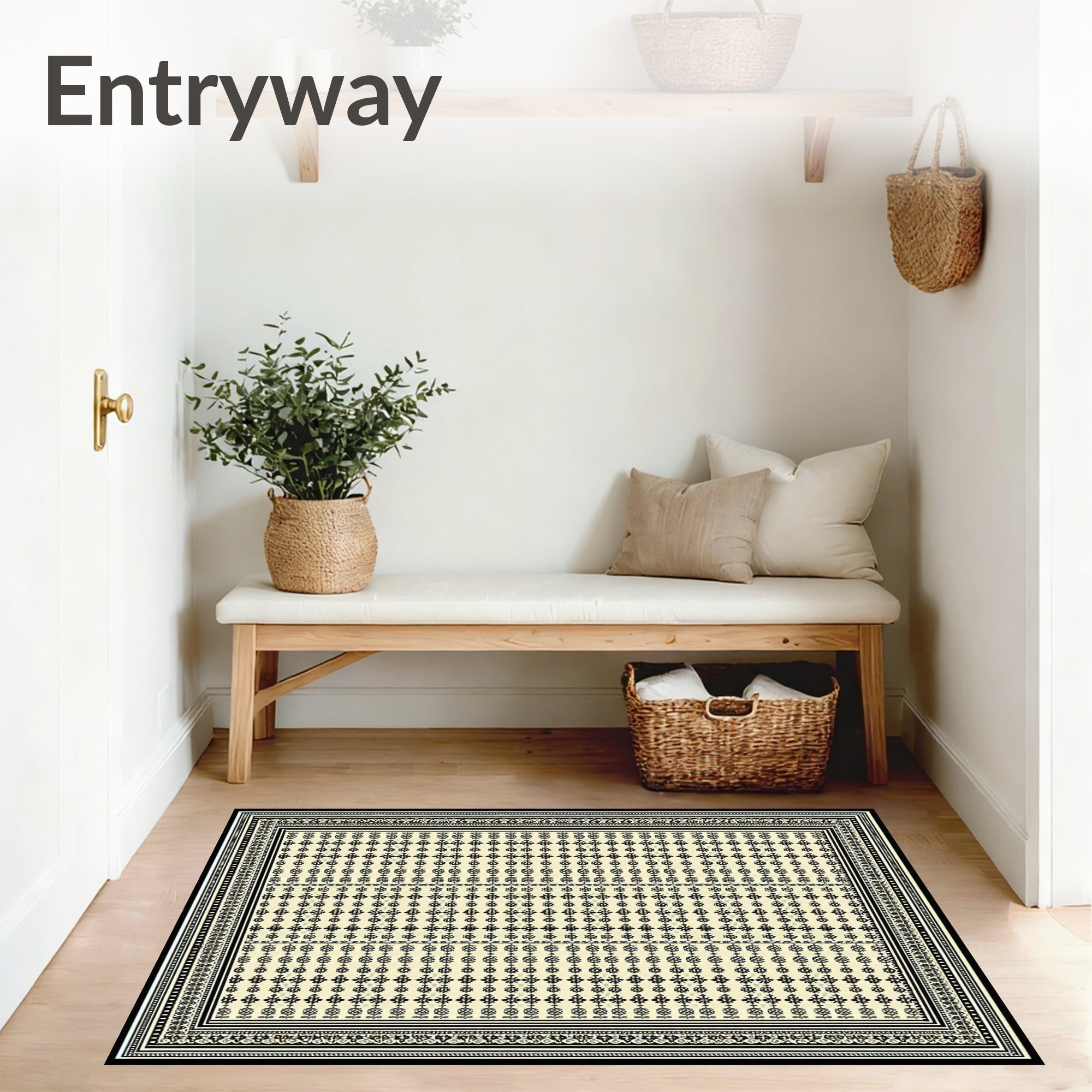 Ultra Soft Area Rug, Non Slip, Stain Resistant, Washable Area Rugs for Living Room, Bedroom, Farmhouse Front Door Mat Striped(Beige) Overview: