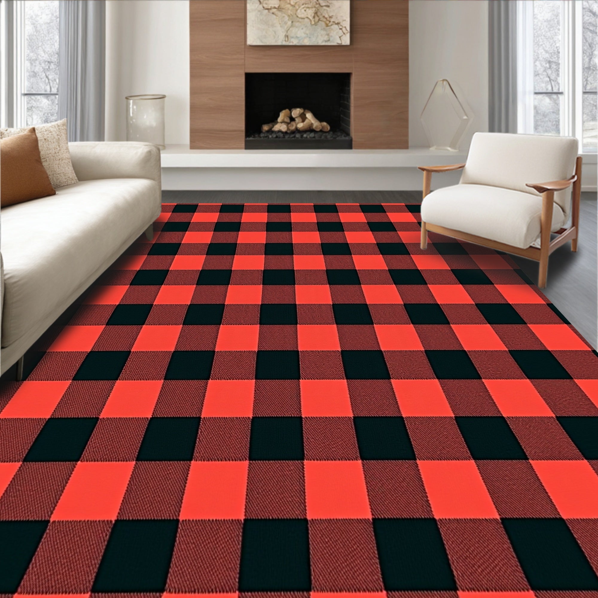 Ultra Soft Area Rug, Non Slip, Stain Resistant, Washable Area Rugs for Living Room, Bedroom, Farmhouse Gingham Doormat with Crossweave(Red) Overview: