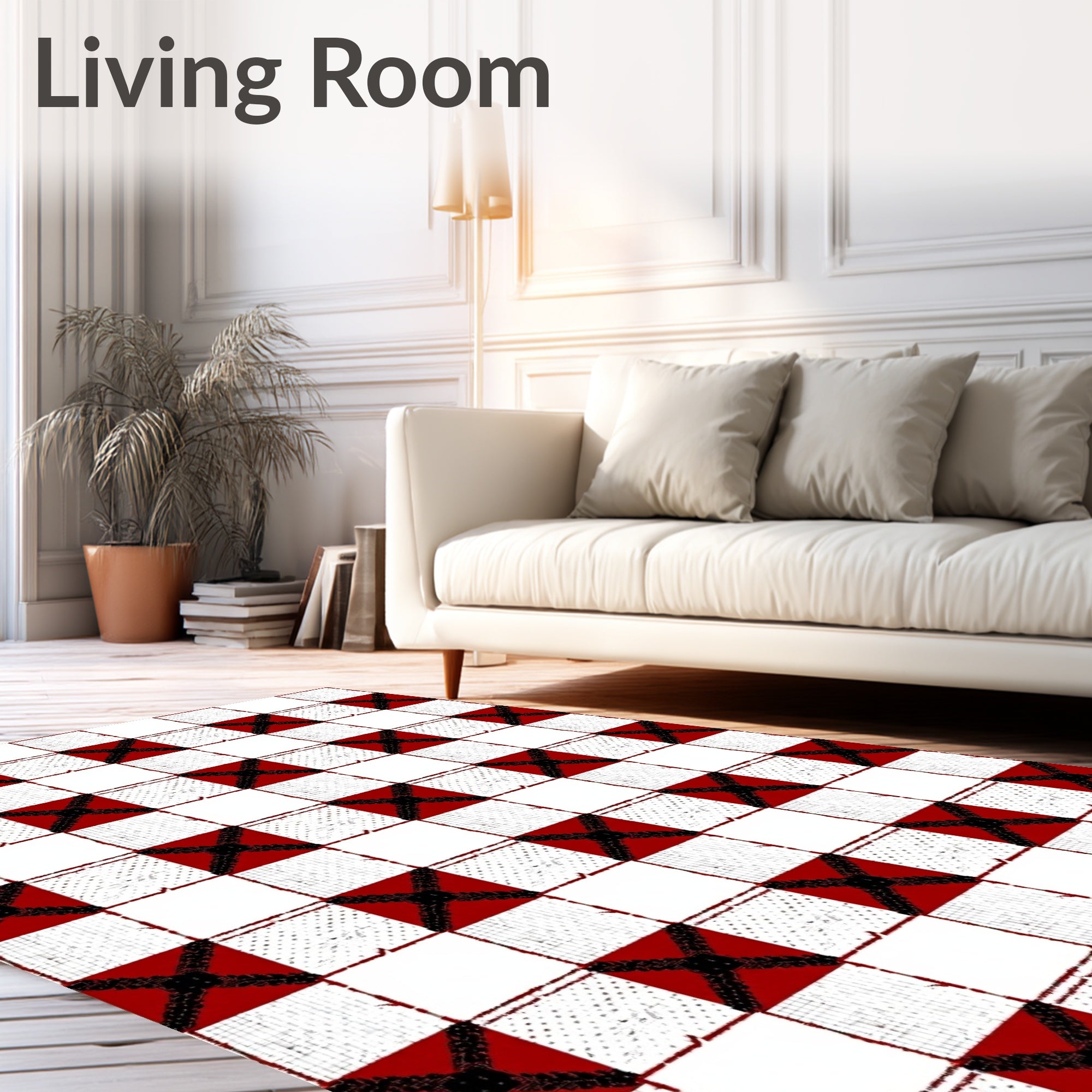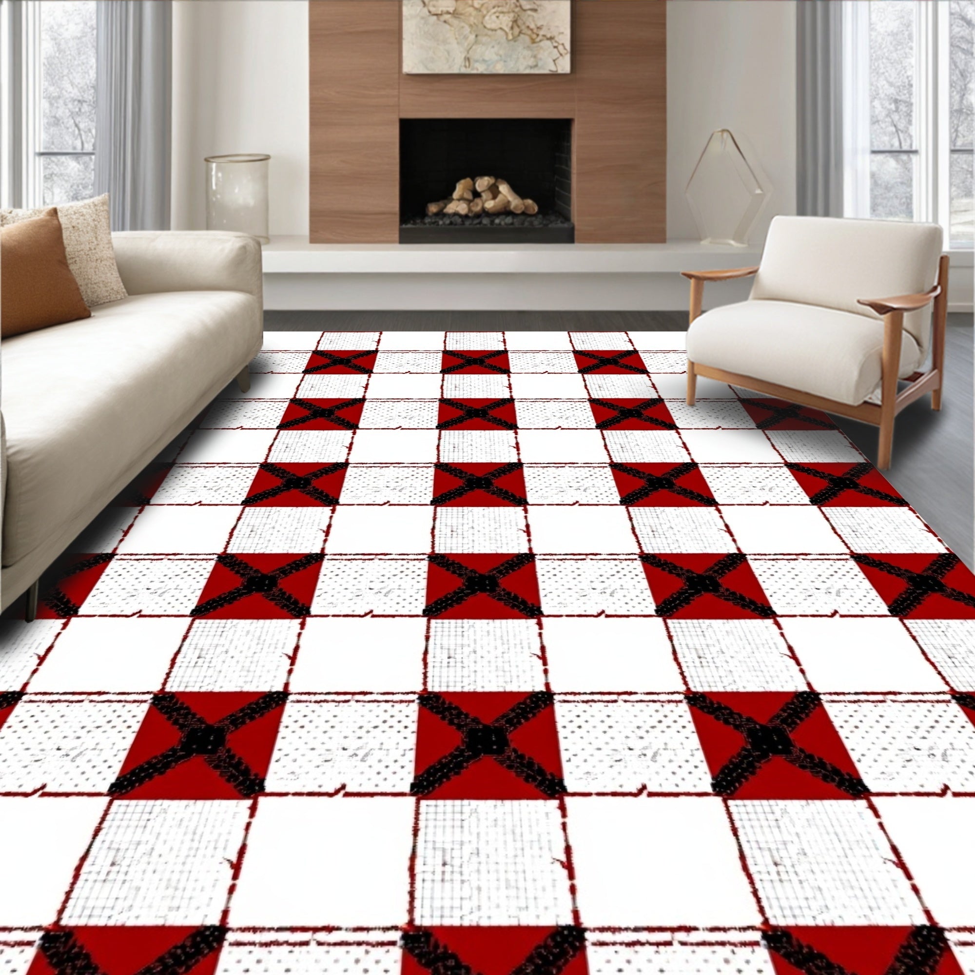Ultra Soft Area Rug, Non Slip, Stain Resistant, Washable Area Rugs for Living Room, Bedroom, Farmhouse Gingham Grid with(Red) Overview: