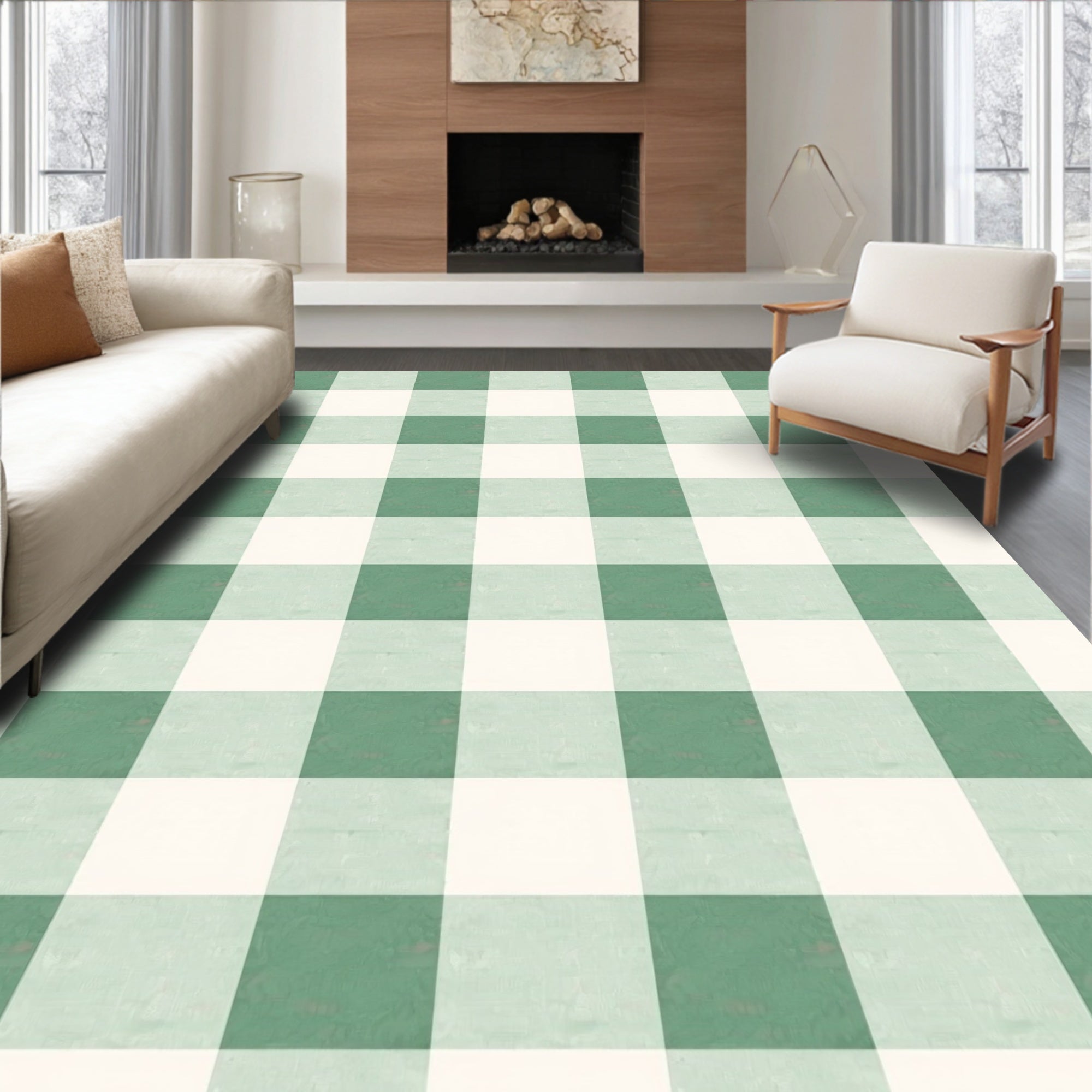 Ultra Soft Area Rug, Non Slip, Stain Resistant, Washable Area Rugs for Living Room, Bedroom, Farmhouse Gingham Style Holiday Entrance Covering(Green) Overview: