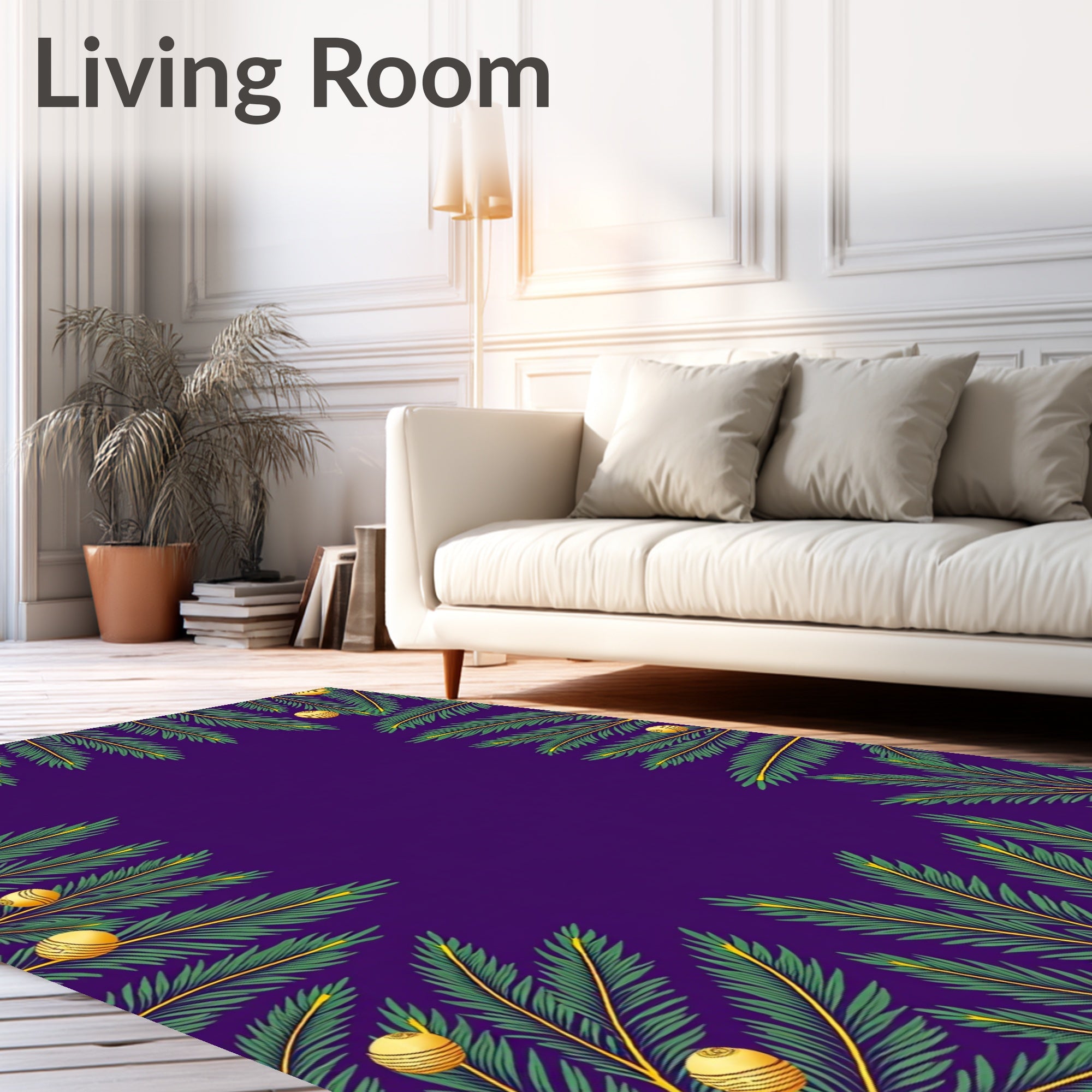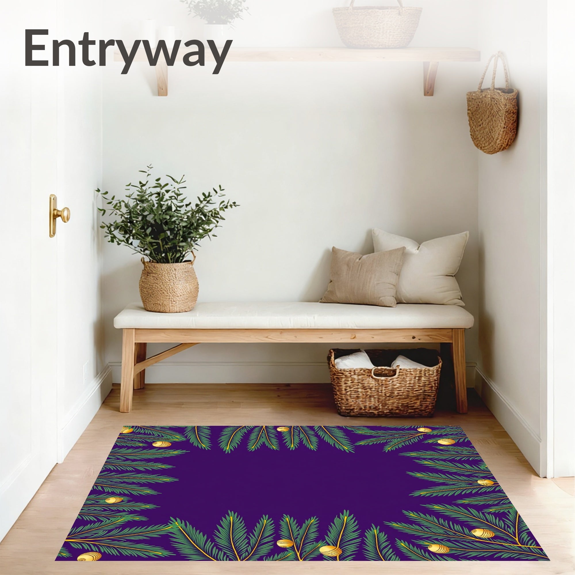 Ultra Soft Area Rug, Non Slip, Stain Resistant, Washable Area Rugs for Living Room, Bedroom, Feathered Fir Branches and Pinecone Arrangement Design(Purple) Overview: