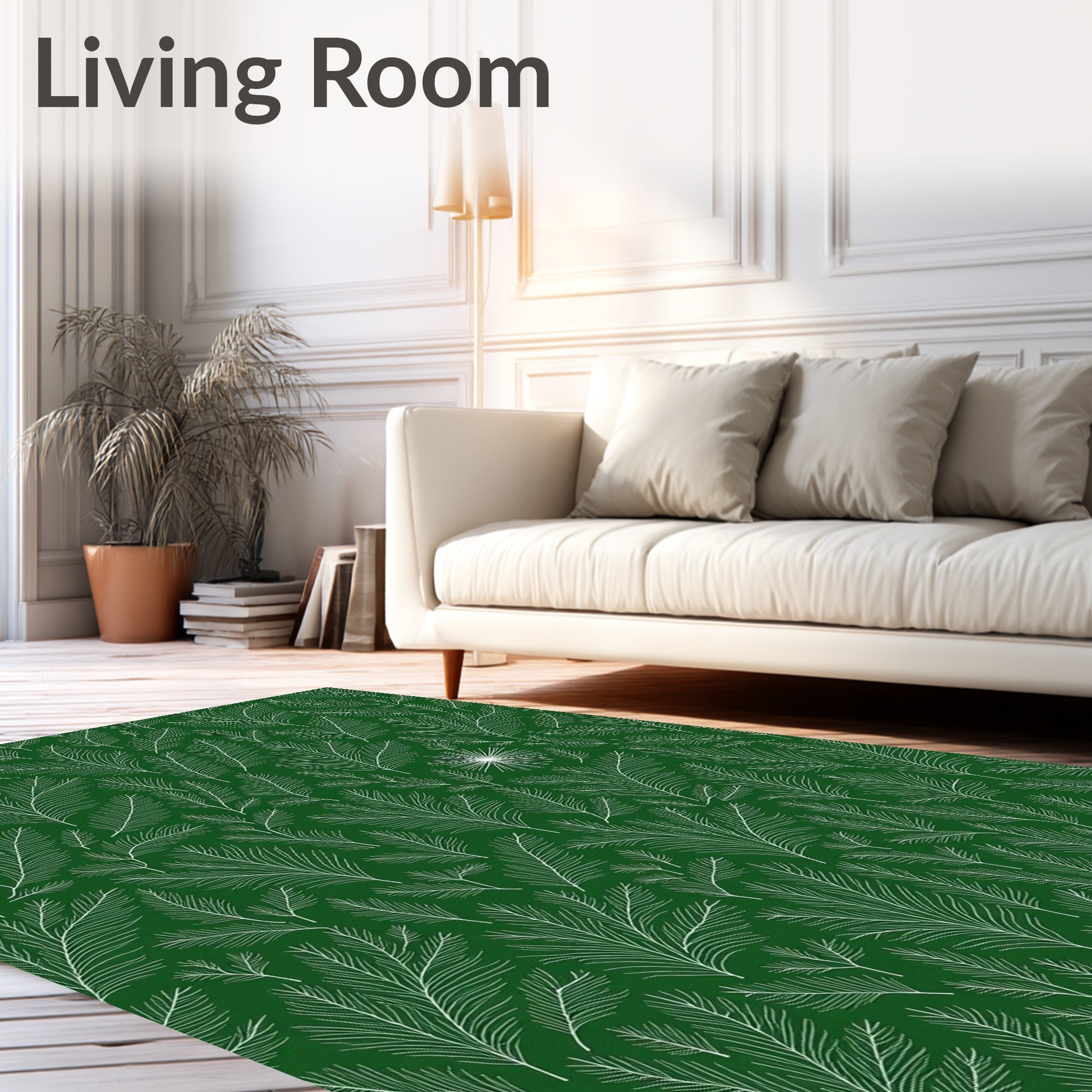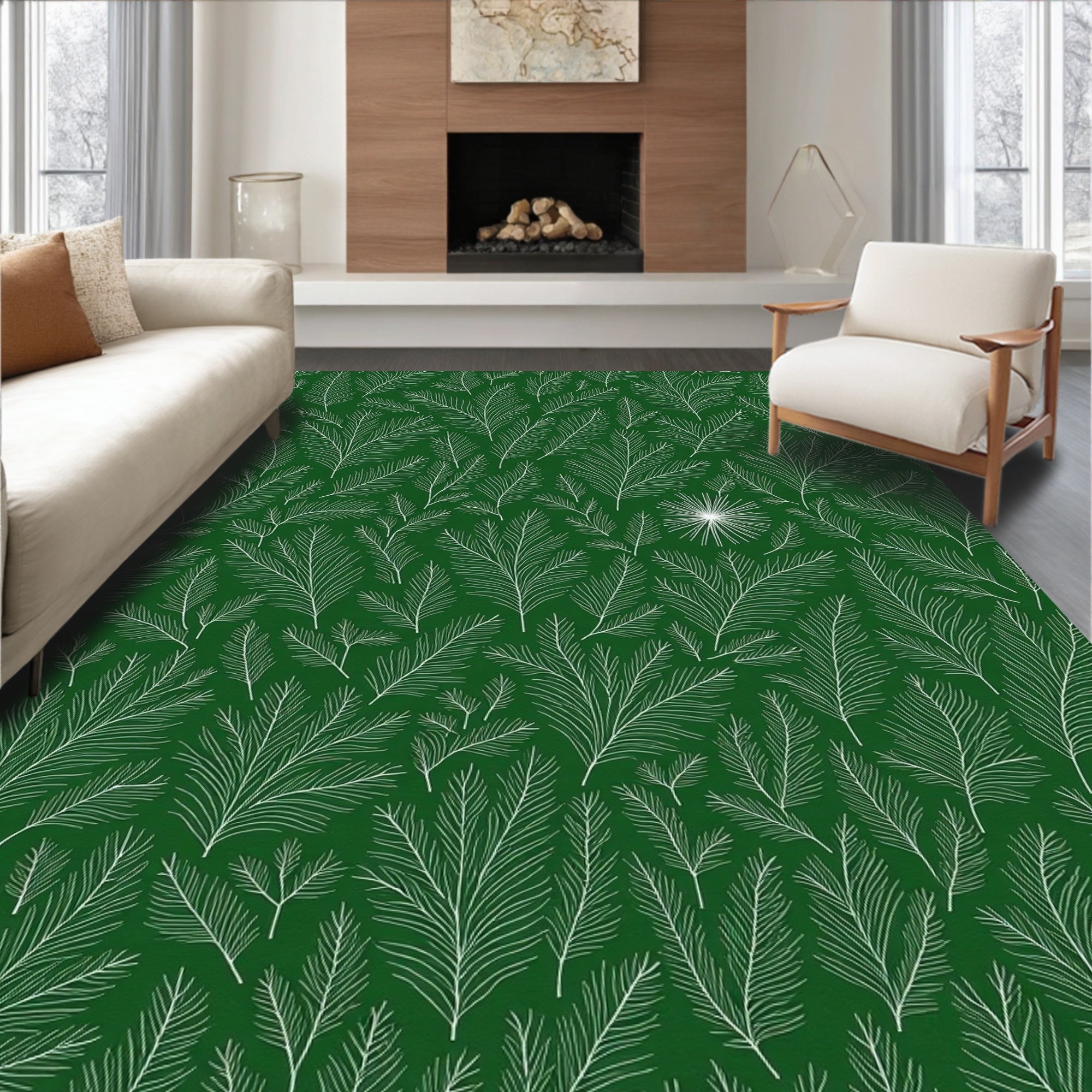 Ultra Soft Area Rug, Non Slip, Stain Resistant, Washable Area Rugs for Living Room, Bedroom, Feathered Pine Needle Snowfall Doormat Non Slip Absorbent Holiday(Green) Overview: