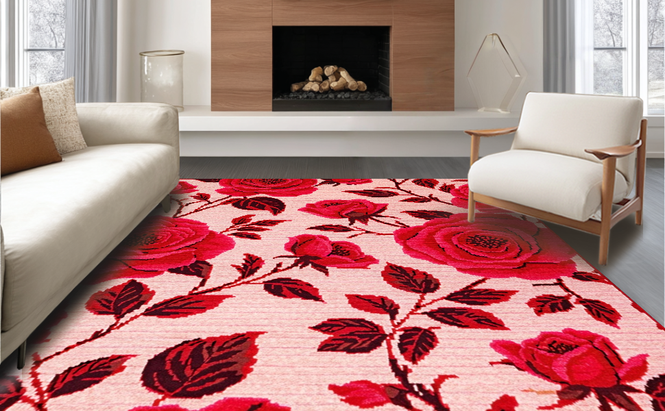 Ultra Soft Area Rug, Non Slip, Stain Resistant, Washable Area Rugs for Living Room, Bedroom, Feminine Cozy Circular Piece(Red) Overview: