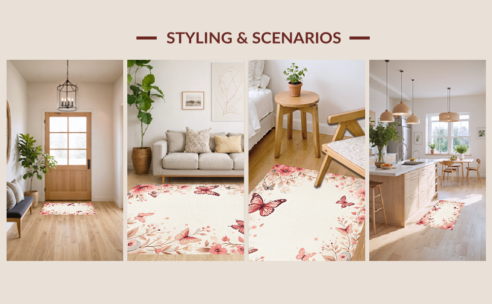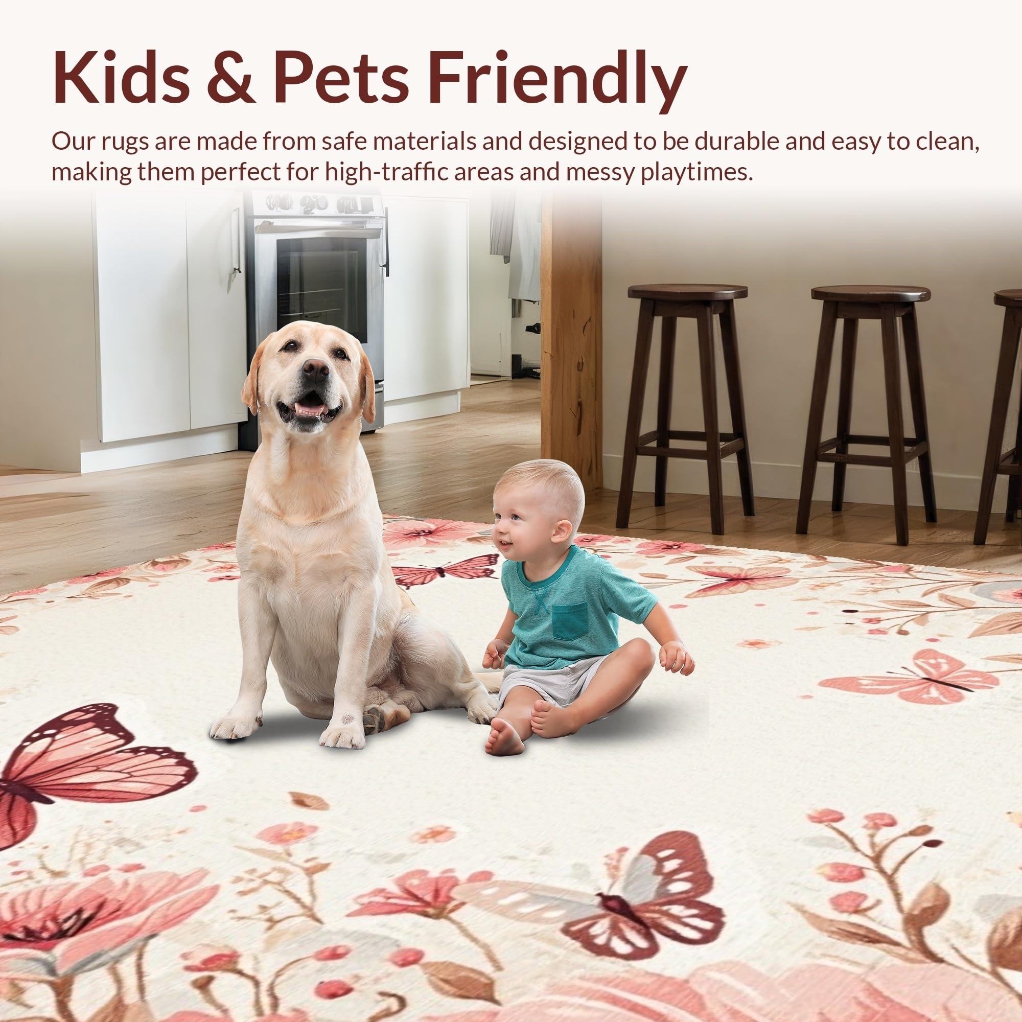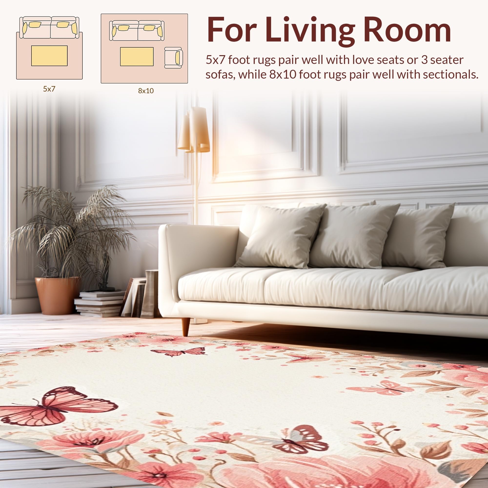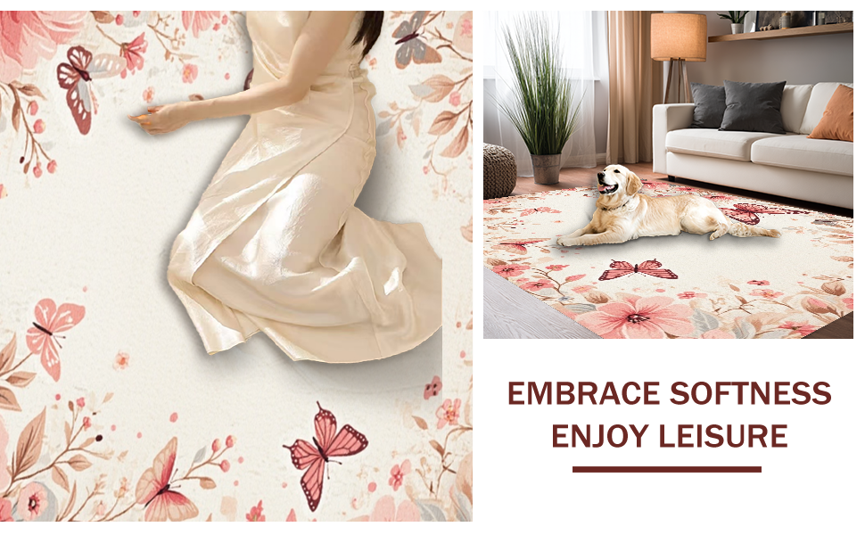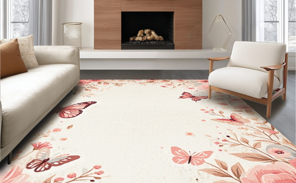Ultra Soft Area Rug, Non Slip, Stain Resistant, Washable Area Rugs for Living Room, Bedroom, Feminine Earthy Tone Pattern(Beige) Overview: