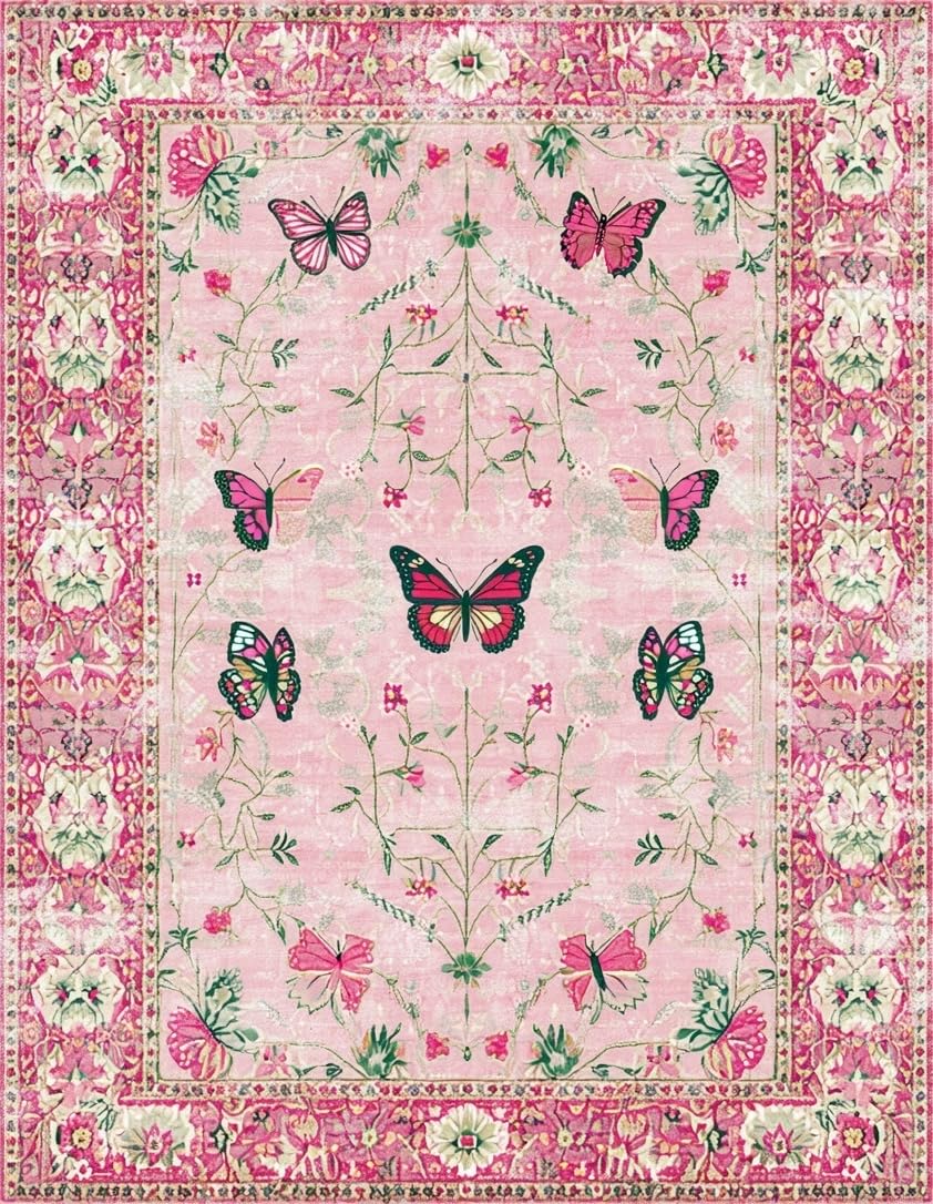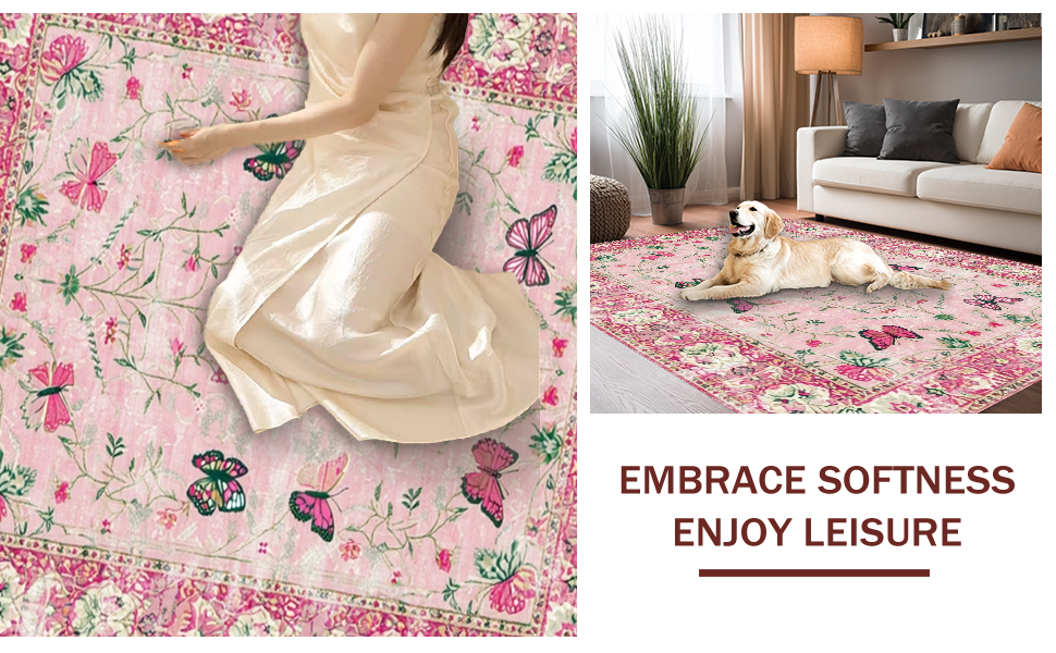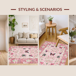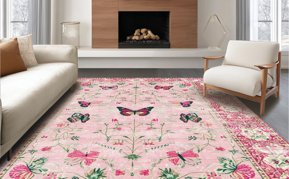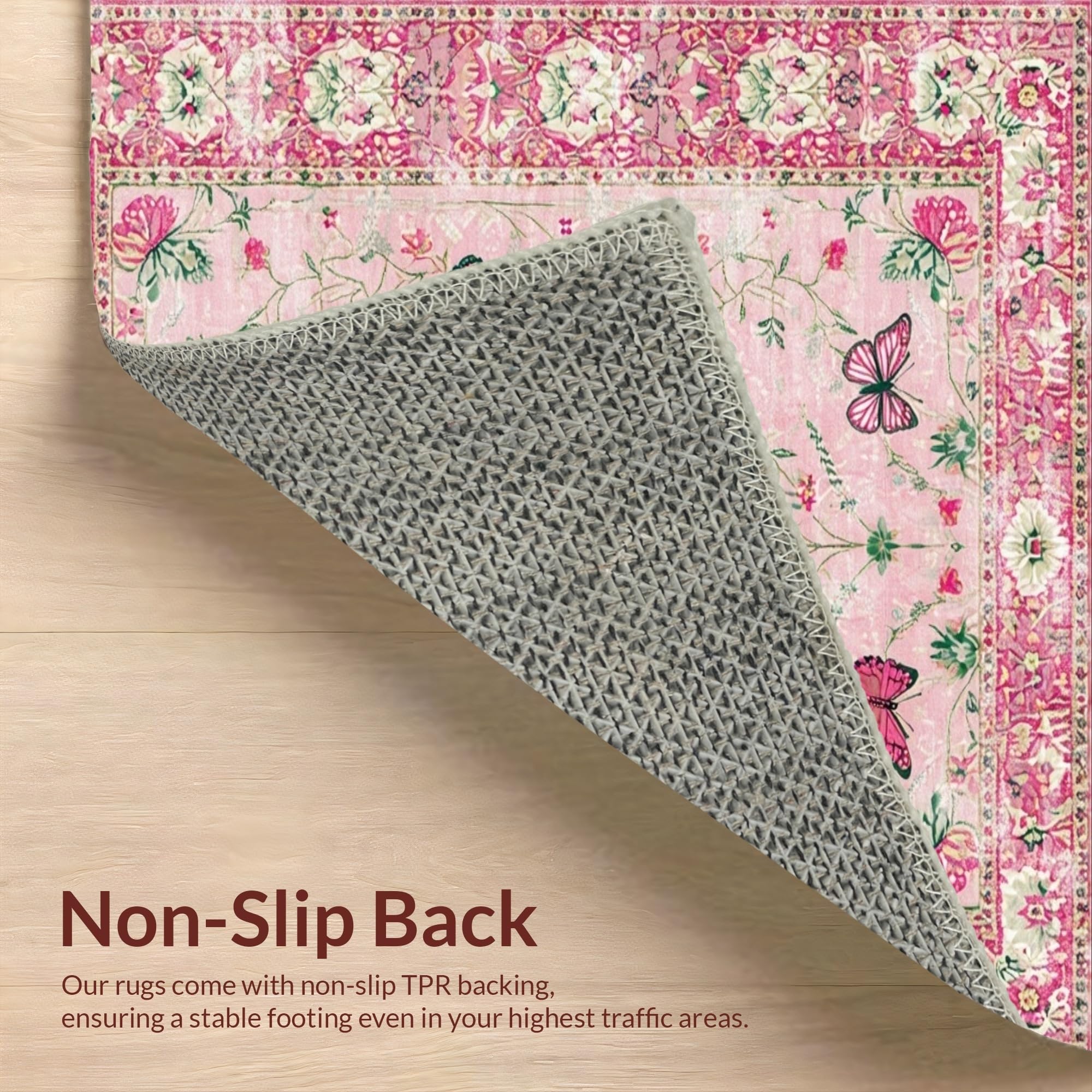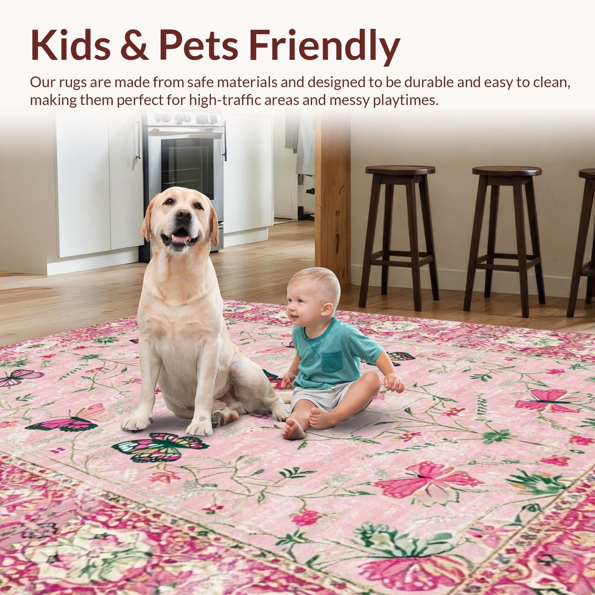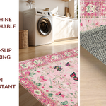 Ultra Soft Area Rug, Non Slip, Stain Resistant, Washable Area Rugs for Living Room, Bedroom, Feminine Vintage Floral Whirl(Pink) Overview: