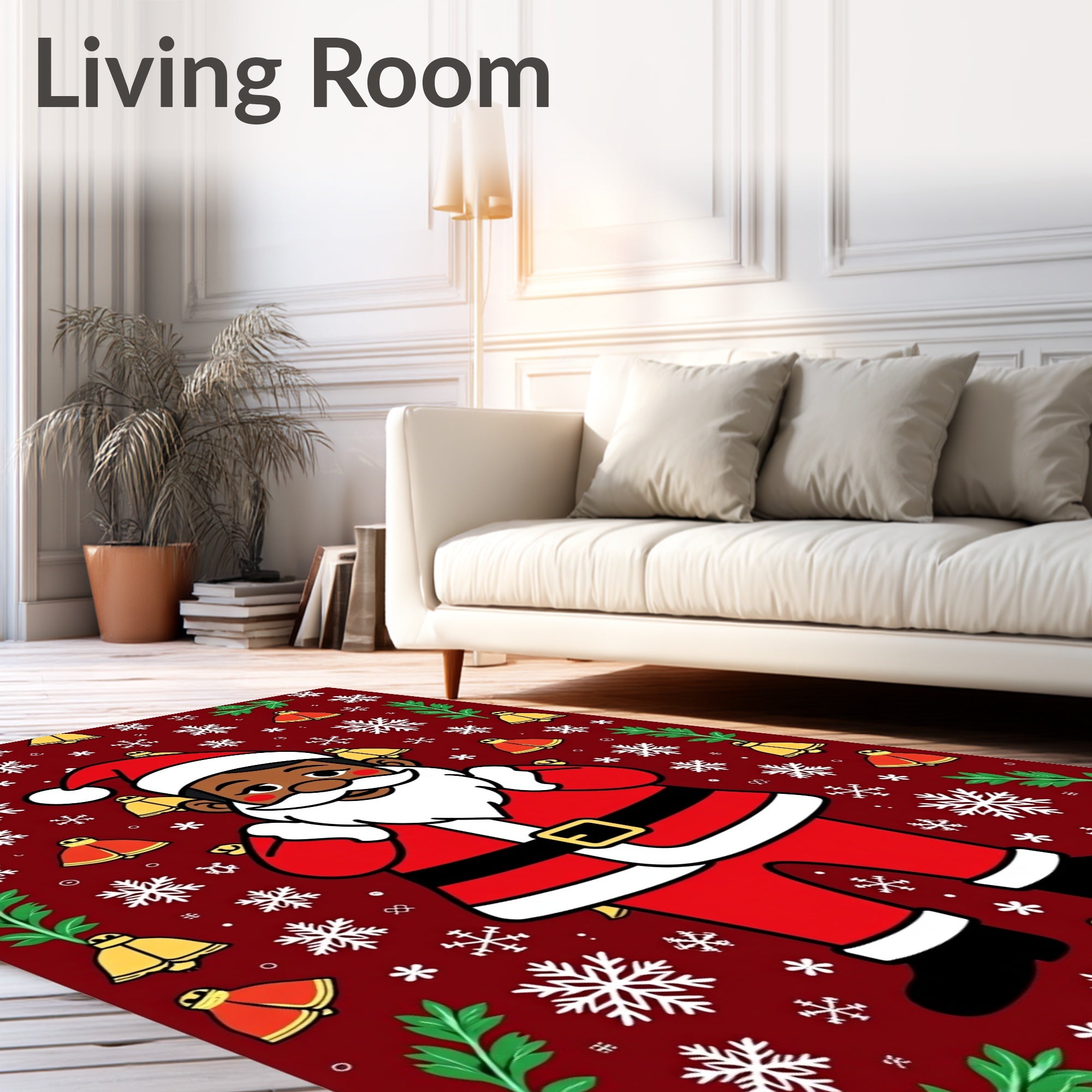 Ultra Soft Area Rug, Non Slip, Stain Resistant, Washable Area Rugs for Living Room, Bedroom, Festive African Heritage Santa Jolly(Red) Overview: