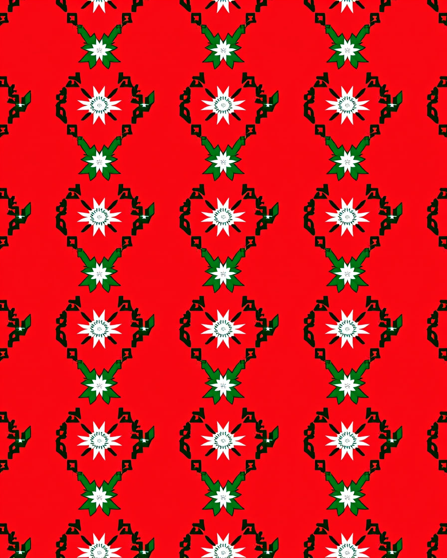 Festive Argyle Patchwork with Stylized Starbursts and Holly Details(Red)