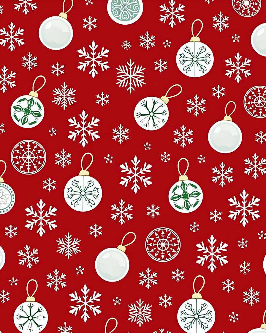 Festive Bauble Cascade with Delicate Snow Crystal Overlay Art(Red)