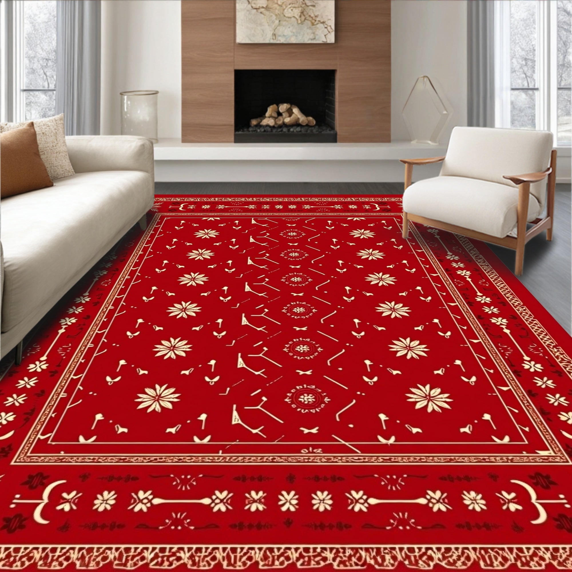 Ultra Soft Area Rug, Non Slip, Stain Resistant, Washable Area Rugs for Living Room, Bedroom, Festive Botanical Vintage Holiday Tapestry(Red) Overview: