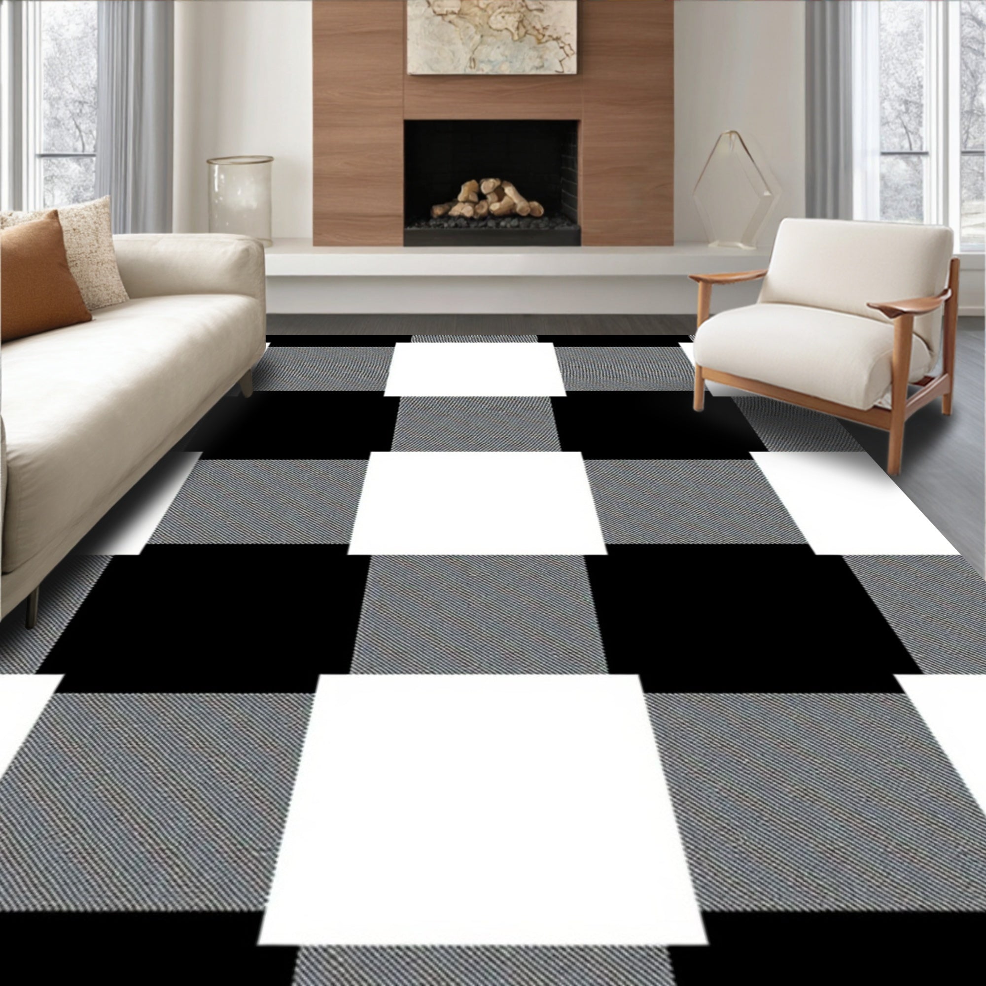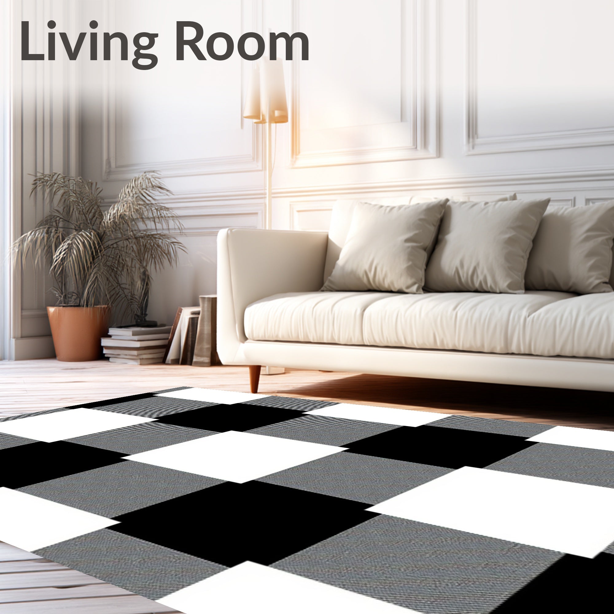 Ultra Soft Area Rug, Non Slip, Stain Resistant, Washable Area Rugs for Living Room, Bedroom, Festive Buffalo Check Decorative Floor Covering(White) Overview: