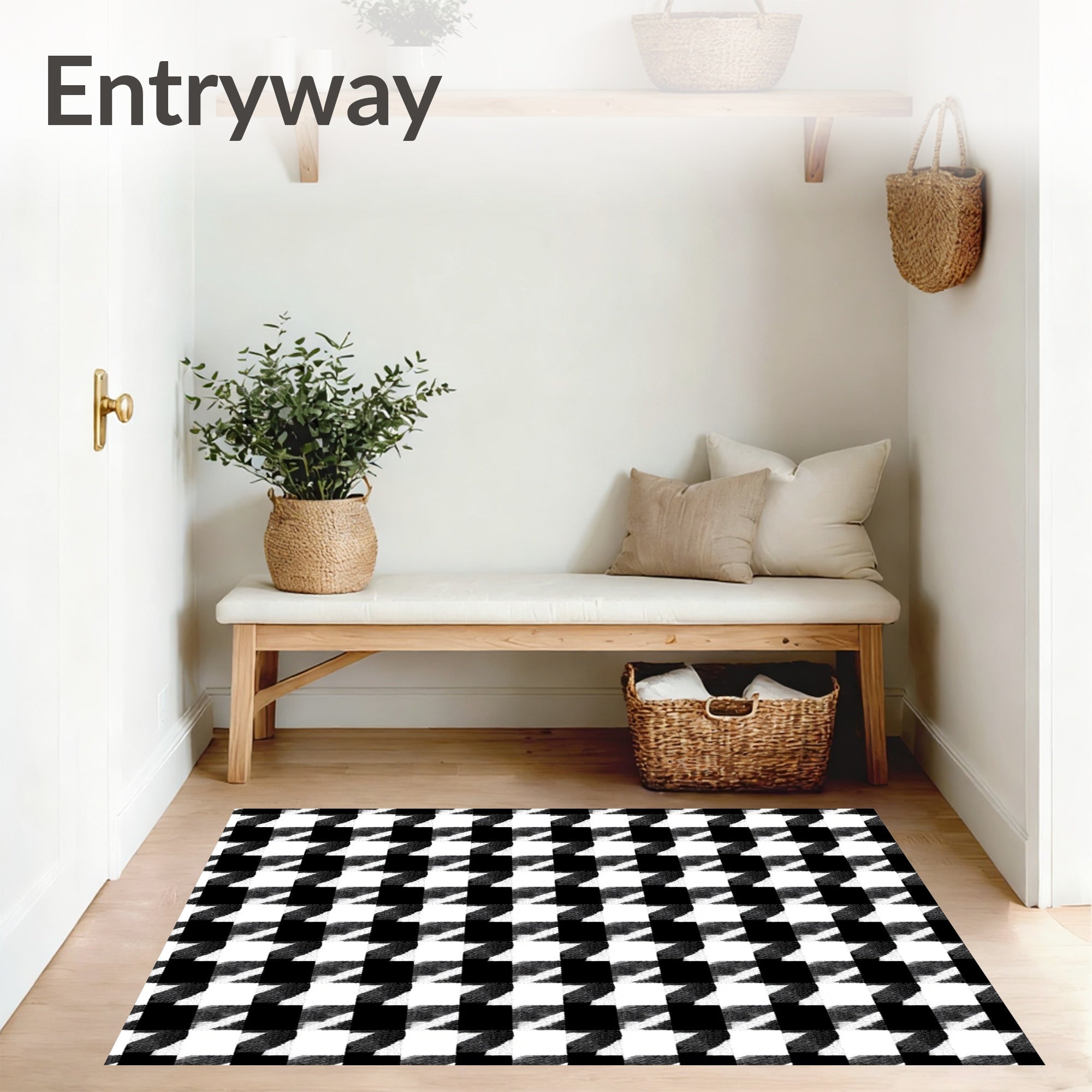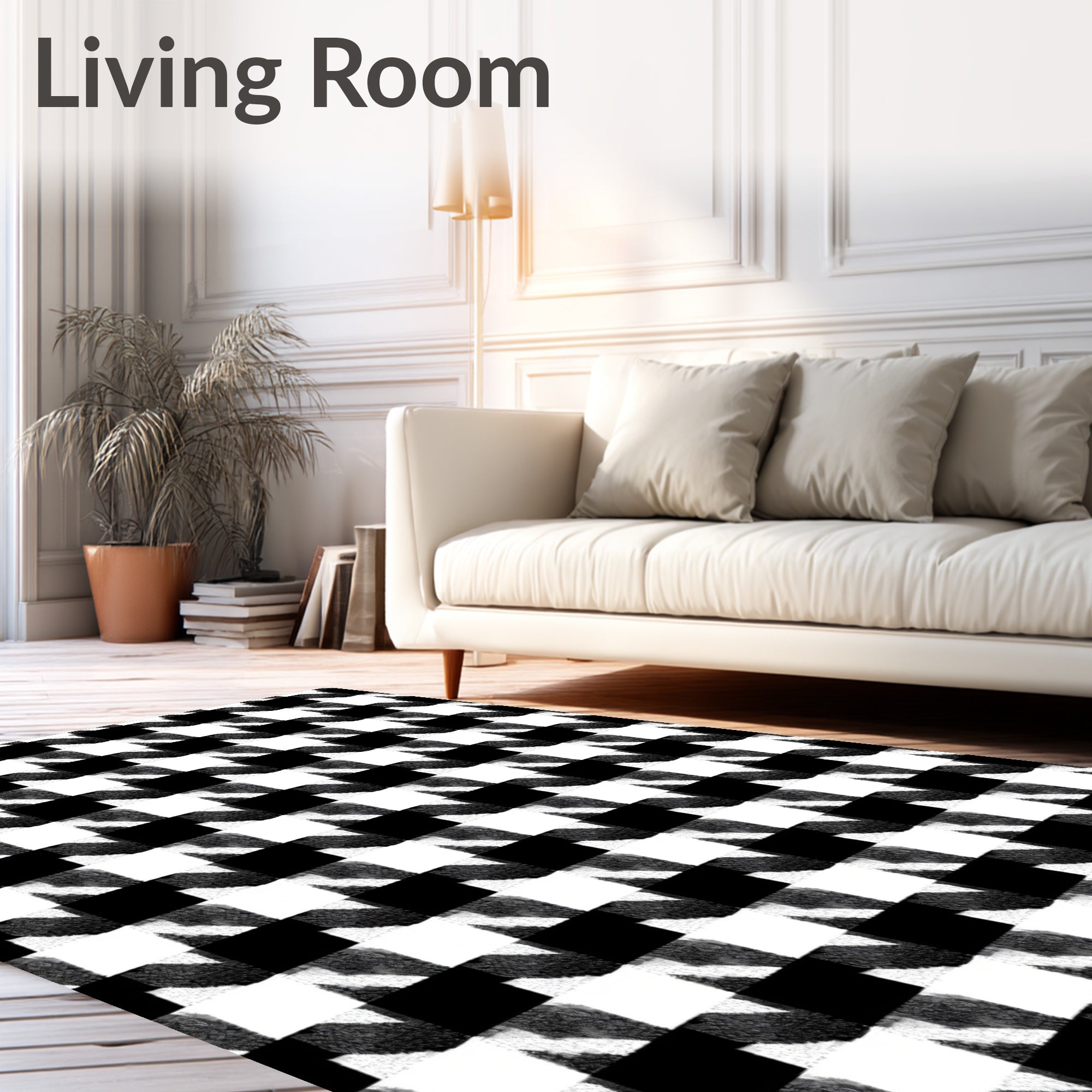 Ultra Soft Area Rug, Non Slip, Stain Resistant, Washable Area Rugs for Living Room, Bedroom, Festive Buffalo Check Holiday Decorative Textile(Black) Overview: