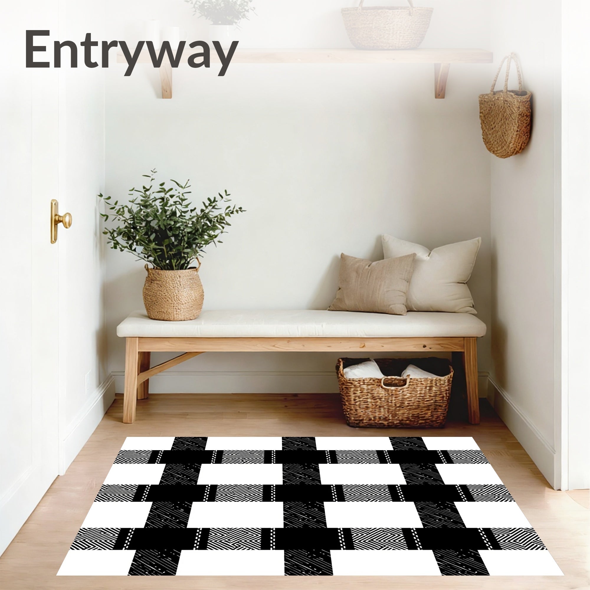Ultra Soft Area Rug, Non Slip, Stain Resistant, Washable Area Rugs for Living Room, Bedroom, Festive Buffalo Check Tapestry(Black) Overview: