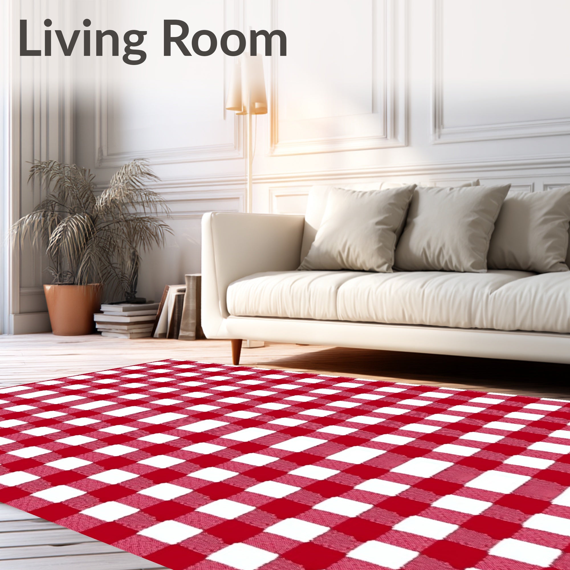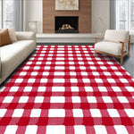 Ultra Soft Area Rug, Non Slip, Stain Resistant, Washable Area Rugs for Living Room, Bedroom, Festive Buffalo Check Welcome with Holiday Checkered Design(Red) Overview: