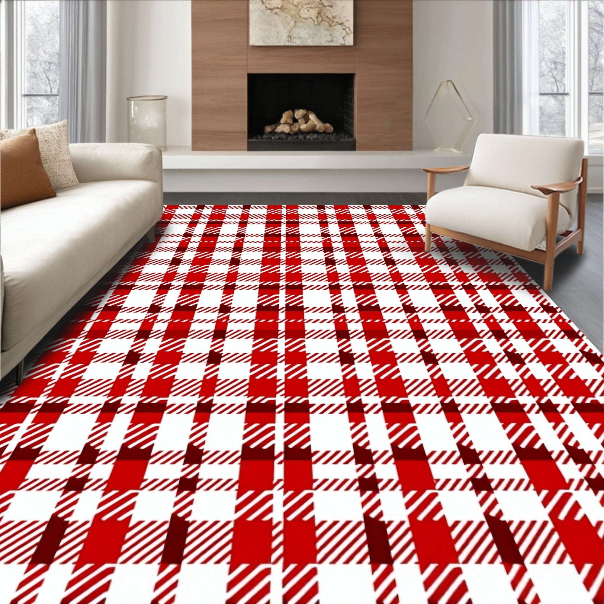 Ultra Soft Area Rug, Non Slip, Stain Resistant, Washable Area Rugs for Living Room, Bedroom, Festive Buffalo Checkered Holiday Entrance Welcome(Red) Overview: