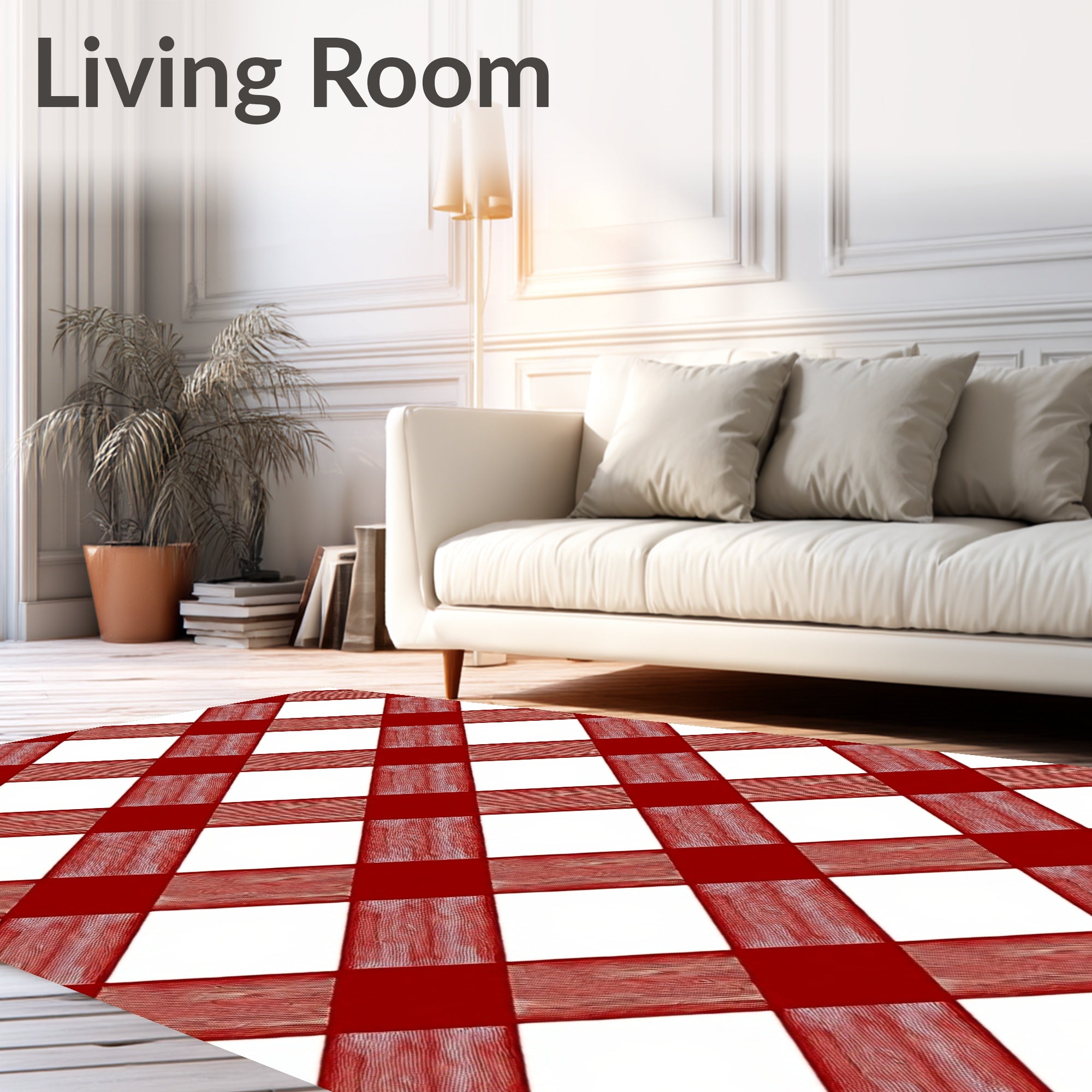 Ultra Soft Area Rug, Non Slip, Stain Resistant, Washable Area Rugs for Living Room, Bedroom, Festive Buffalo Heritage Lattice Welcome(Red) Overview: