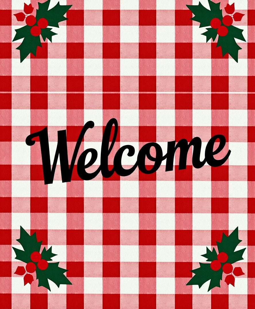 Festive Buffalo Plaid Welcome Doormat Holiday Entrance Coir(Red)