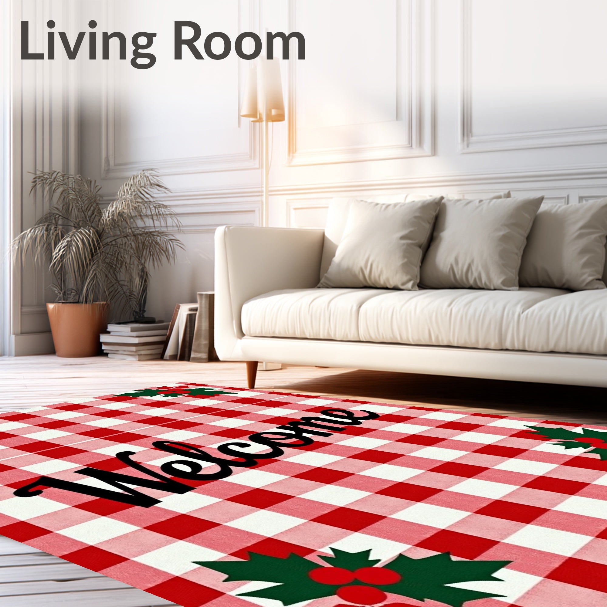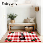 Ultra Soft Area Rug, Non Slip, Stain Resistant, Washable Area Rugs for Living Room, Bedroom, Festive Buffalo Plaid Welcome Doormat Holiday Entrance Coir(Red) Overview: