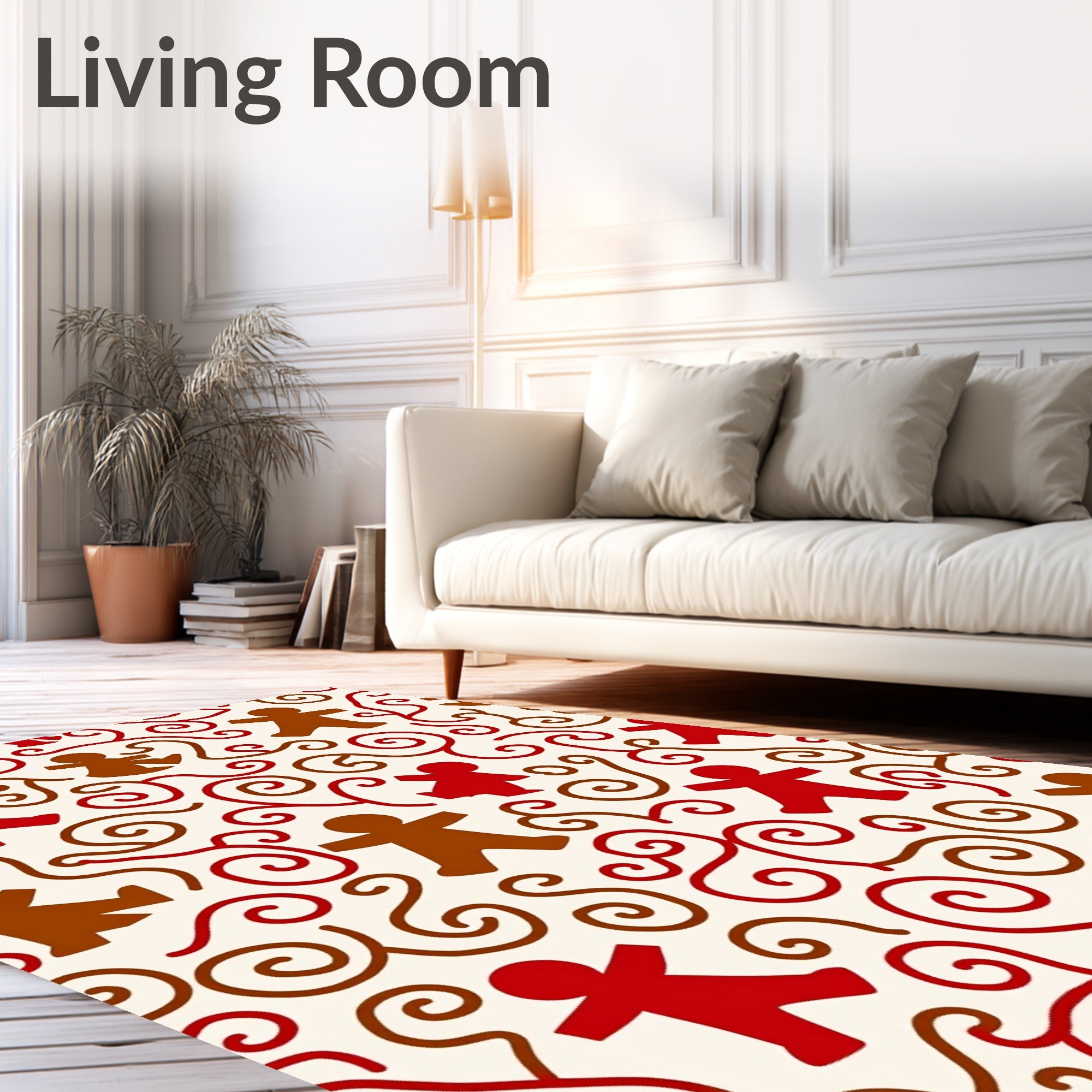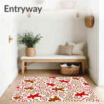 Ultra Soft Area Rug, Non Slip, Stain Resistant, Washable Area Rugs for Living Room, Bedroom, Festive Cane Swirl and Gingerbread Duo(Red) Overview: