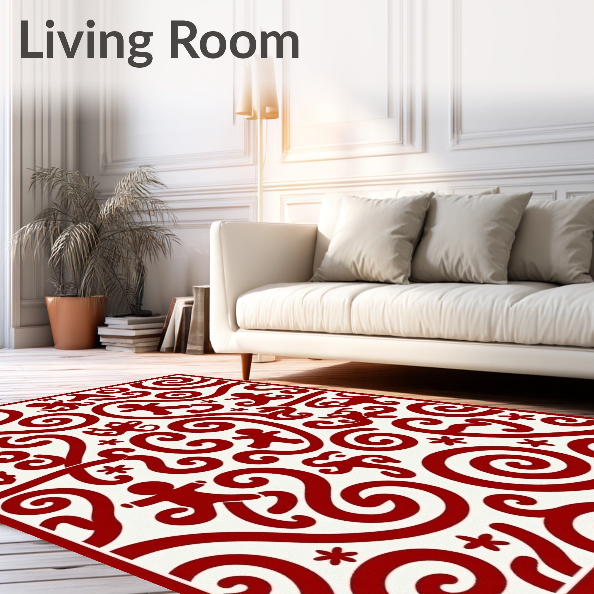 Ultra Soft Area Rug, Non Slip, Stain Resistant, Washable Area Rugs for Living Room, Bedroom, Festive Cane Swirl and Gingerbread Silhouettes Duo(Red) Overview:
