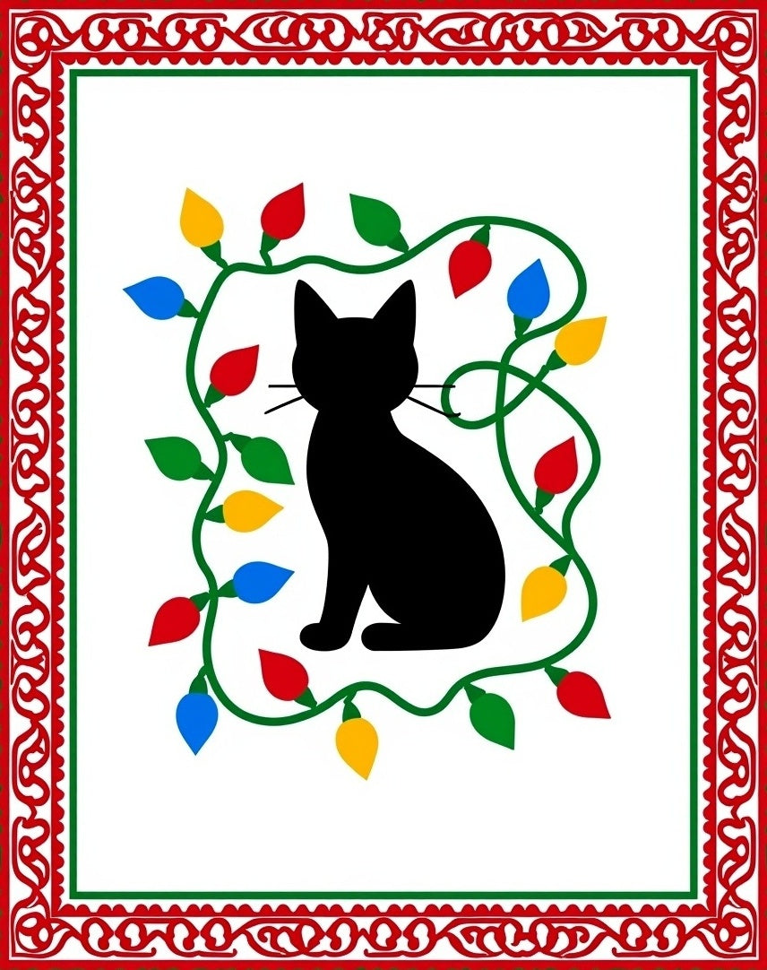 Festive Cat Lights Tangle Holiday Whimsy Design(Red)