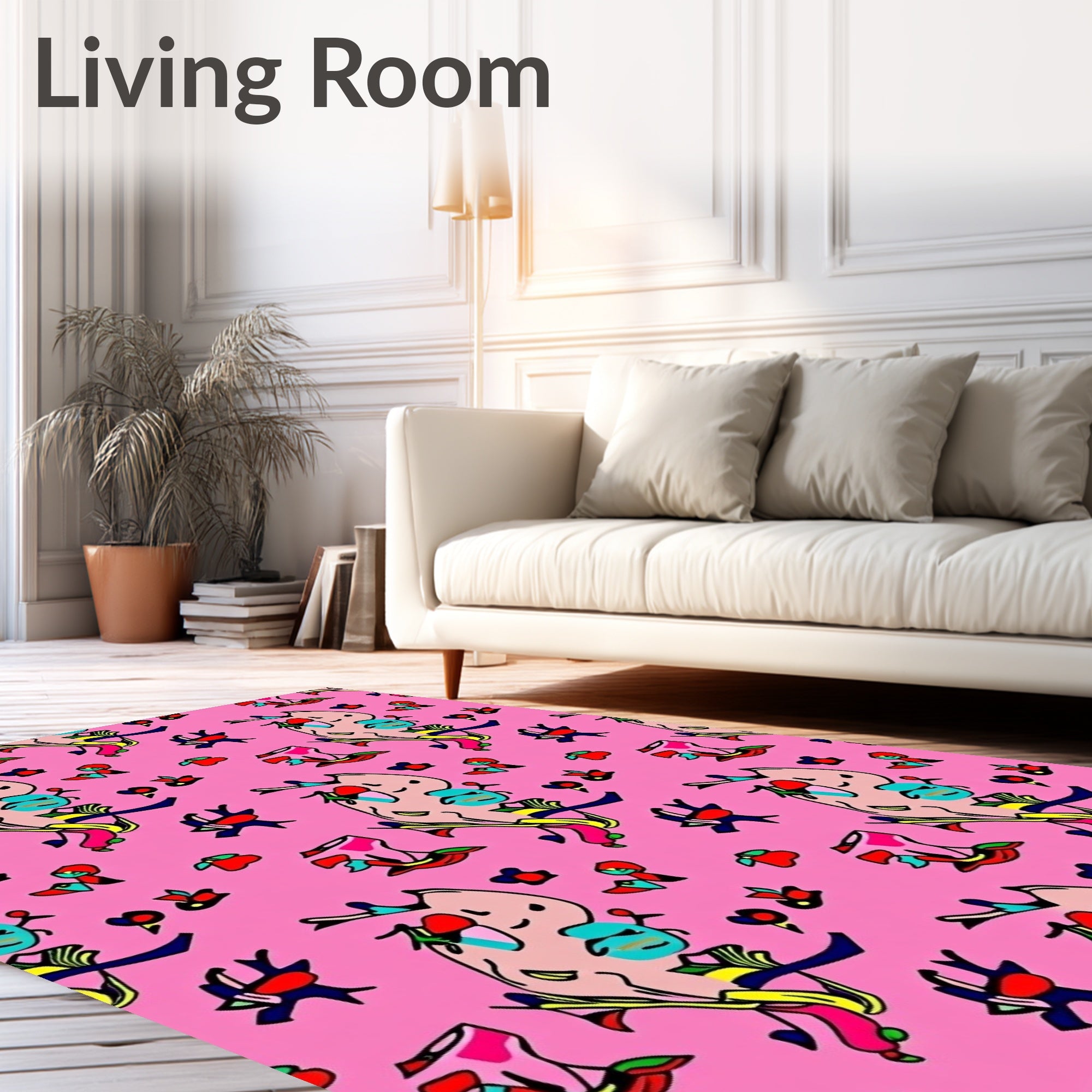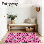 Ultra Soft Area Rug, Non Slip, Stain Resistant, Washable Area Rugs for Living Room, Bedroom, Festive Cat Motif with Twinkling Light Embellishments(Pink) Overview: